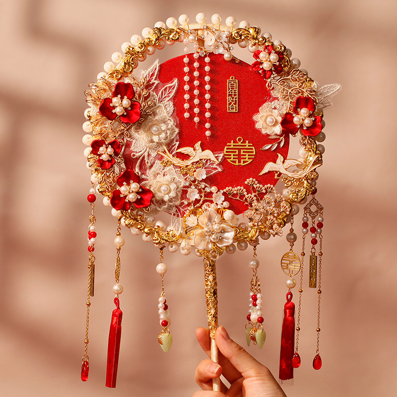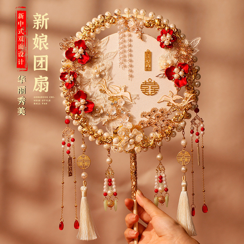웨딩 신부 라운드 팬 샴페인 골동품 더블 링 완성 된 중국 결혼식 xiuhe 팬 수제 하이 팬 DIY 소재 가방스토어 가기