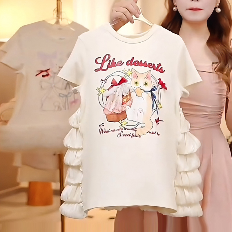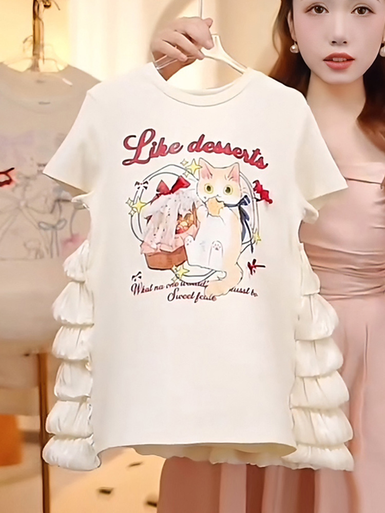 여자 케이크 티셔츠 드레스 여름 2025 새로운 어린이 프린트 스커트 여름 드레스 여자 반팔 드레스 유행스토어 가기