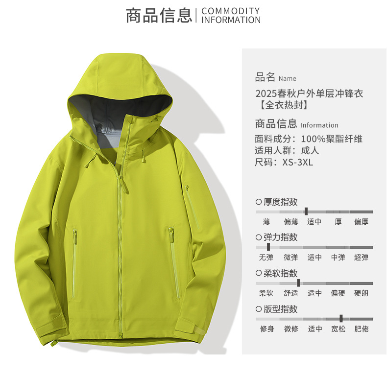 남성과 여성을 위한 야외 완전 열 밀봉 단층 재킷, 봄과 가을 방풍 및 방수 후드 재킷, 등산 재킷