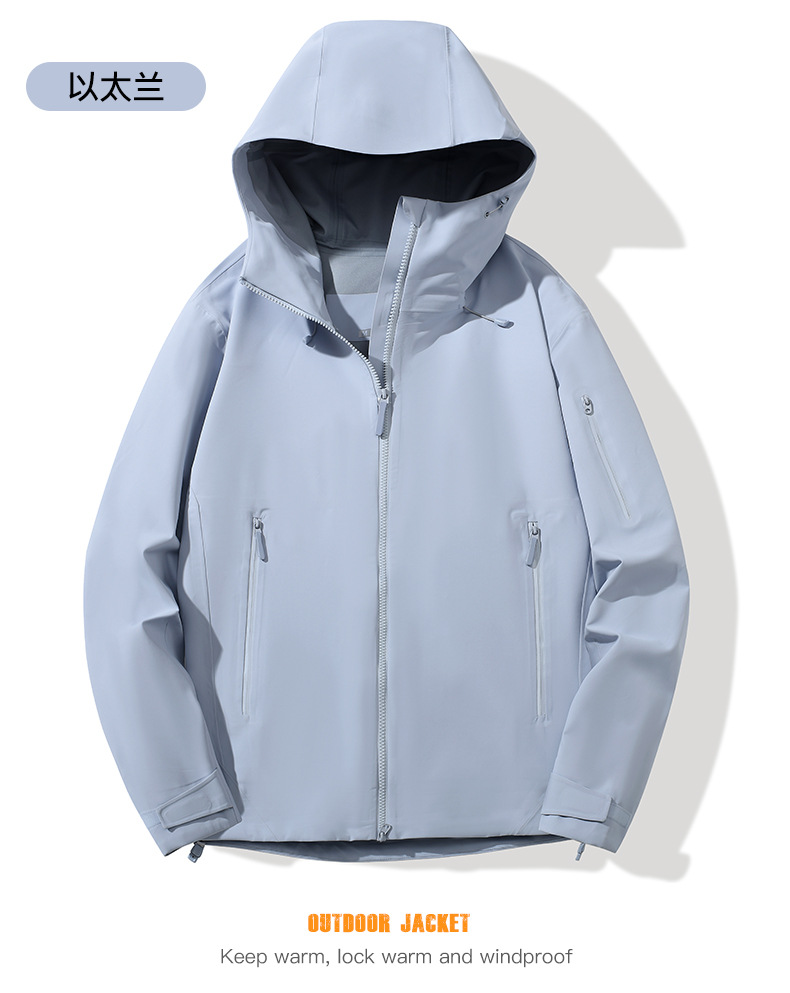 남성과 여성을 위한 야외 완전 열 밀봉 단층 재킷, 봄과 가을 방풍 및 방수 후드 재킷, 등산 재킷스토어 가기