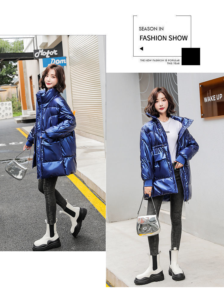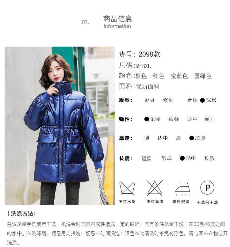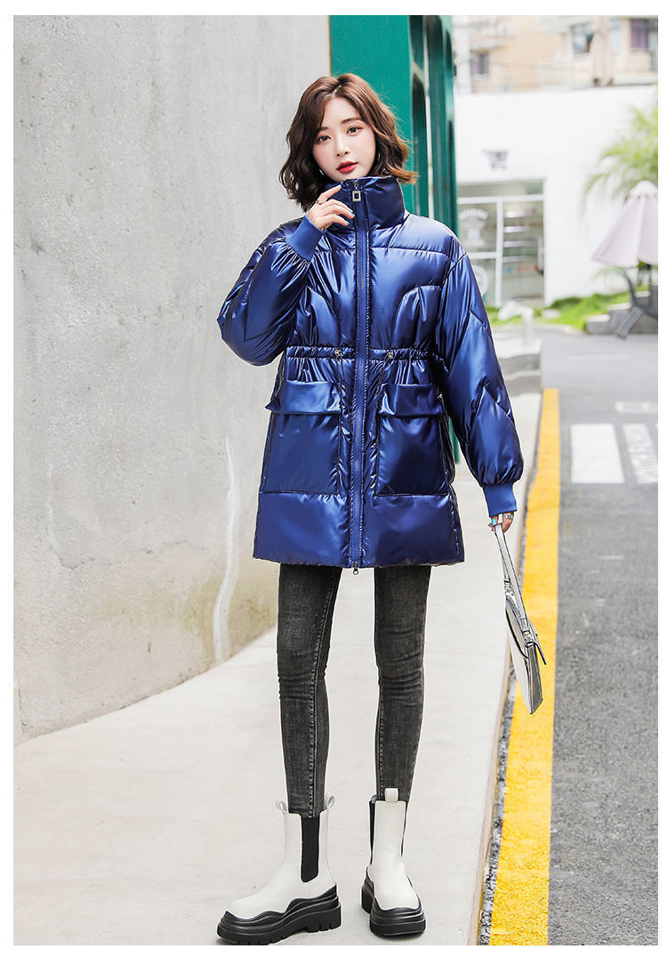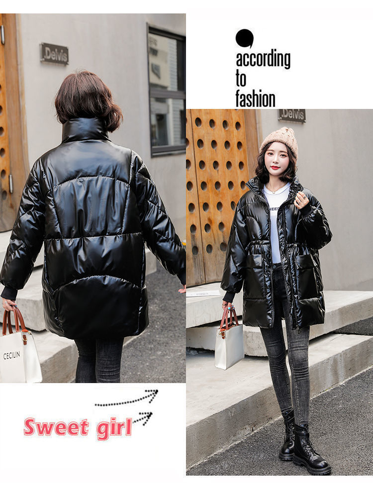 2024 새로운 밝은 얼굴 세척-면화 패딩 코트 여성의 중간 길이 겨울 패션 편안한 허리 빵 코트면 패딩 코트 트렌디스토어 가기