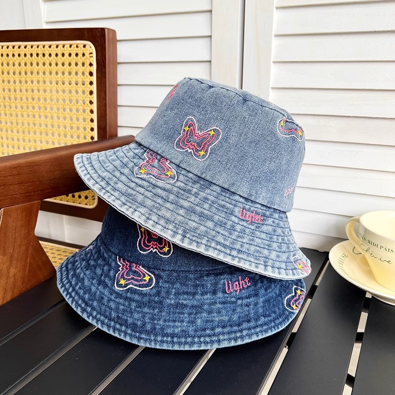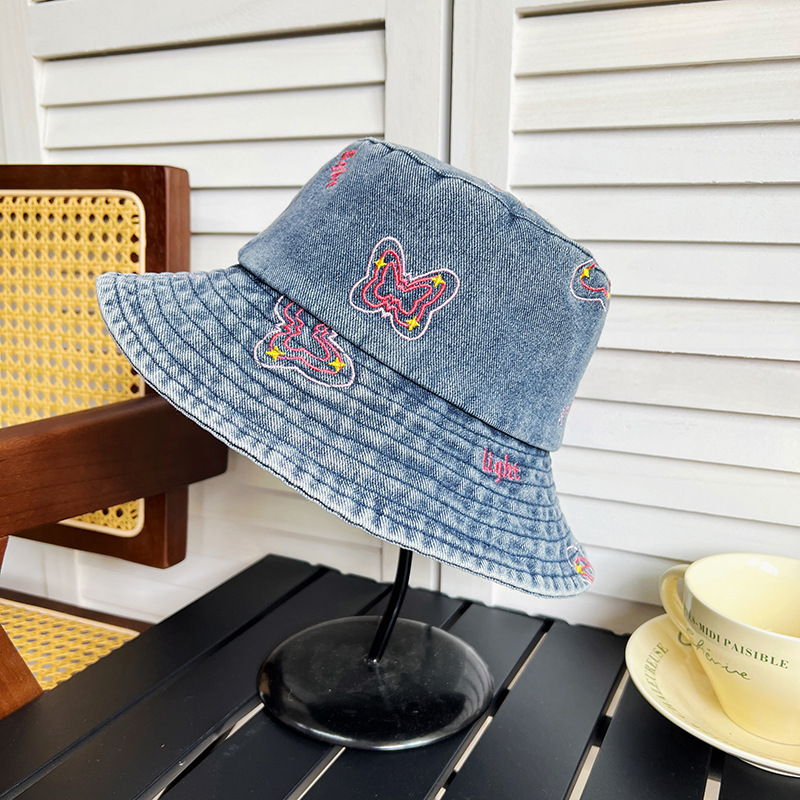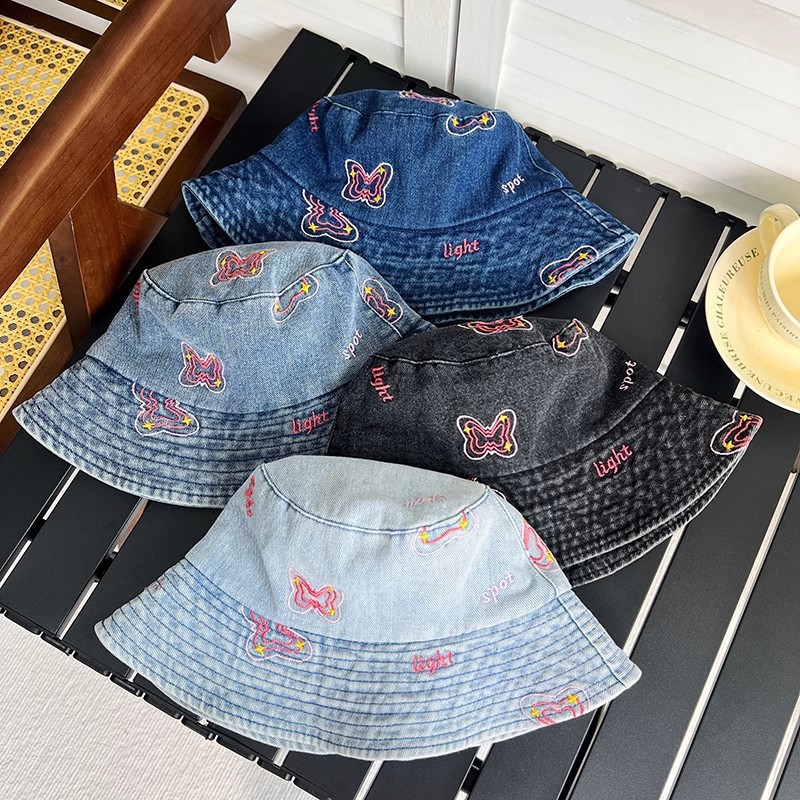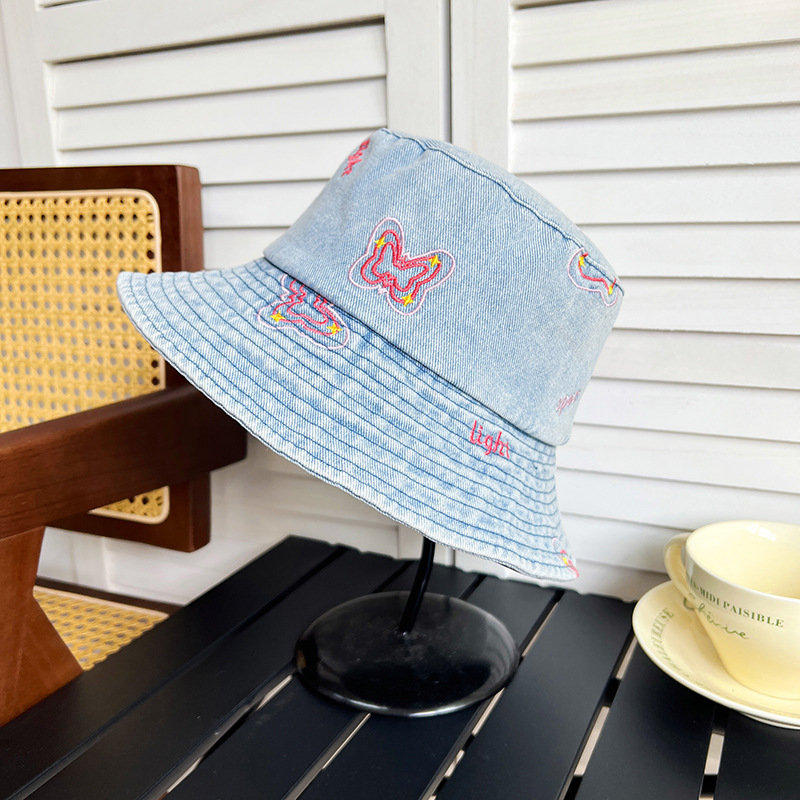 여름용 여성용 일본식 달콤한 나비 데님 어부 모자, 자외선 차단, 한국식 분지 모자, 틈새 시장, 다용도, 작은 얼굴스토어 가기