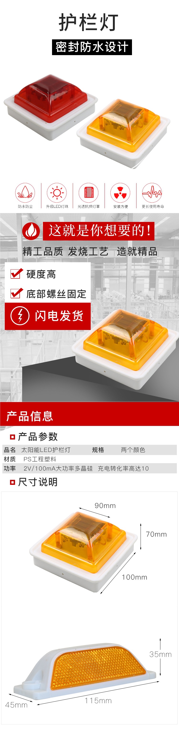 태양광 경고등, 야간 점멸등, 기둥캡, 울타리, 가드레일, 장애물등, 태양광 기둥캡등