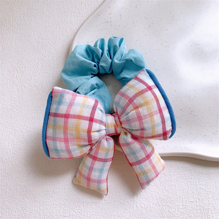한국 스타일 달콤한 어린이 체크 활 대장 머리 반지 웨이브 포인트 꽃 머리 로프 소녀의 말꼬리 고무 밴드 헤드 로프