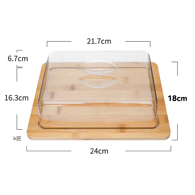 아마존 대나무 버터 상자 버터 보관 주방 용품 뚜껑이있는 크리스퍼 커버 투명 뚜껑 대나무 나무 트레이 디너 플레이트