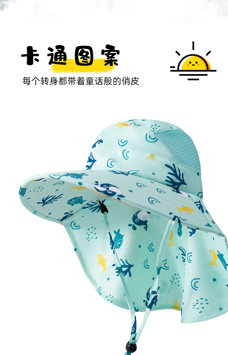 자외선 차단제 모자 어린이의 자외선 방지 야외 해변 모자 빠른 건조 통기성 새 태양 모자 여름 인쇄 모자