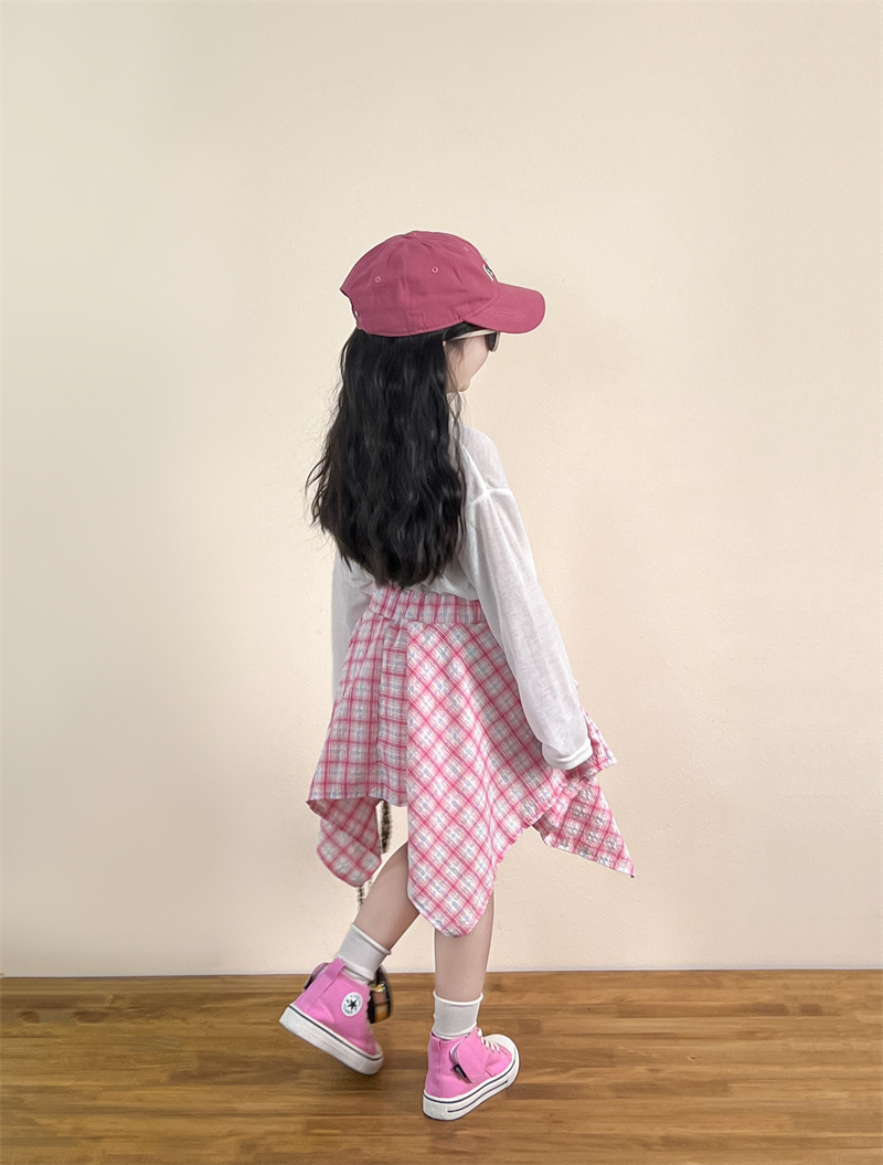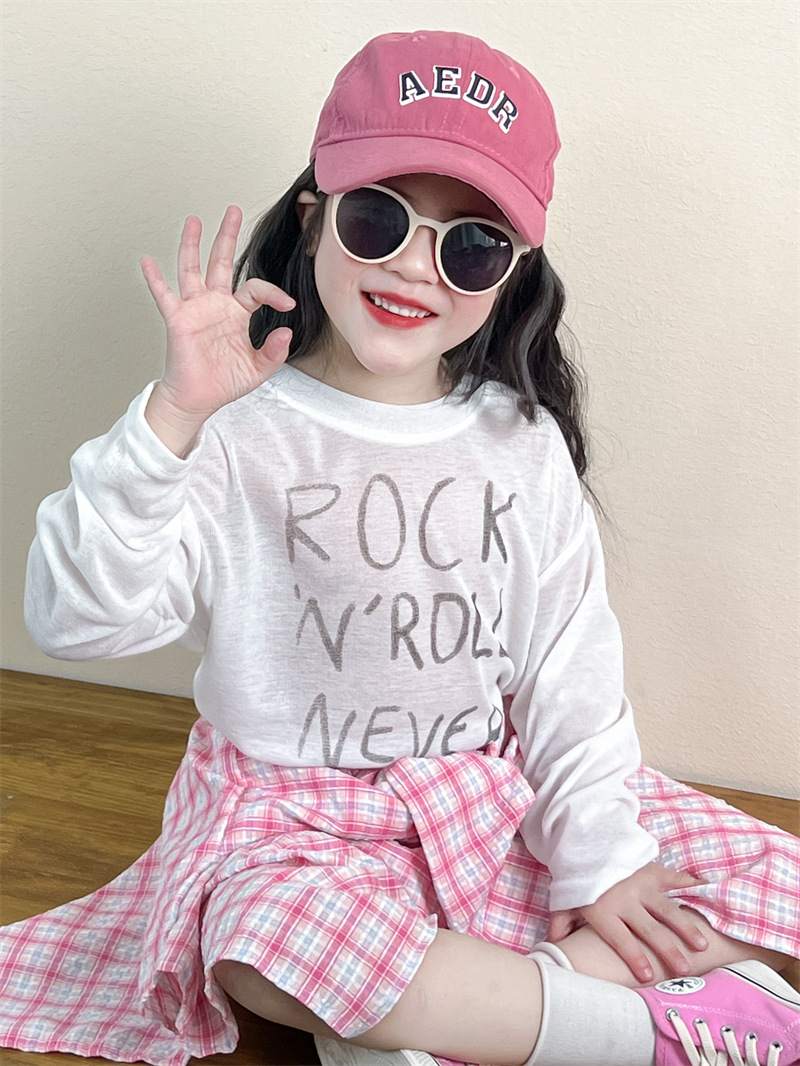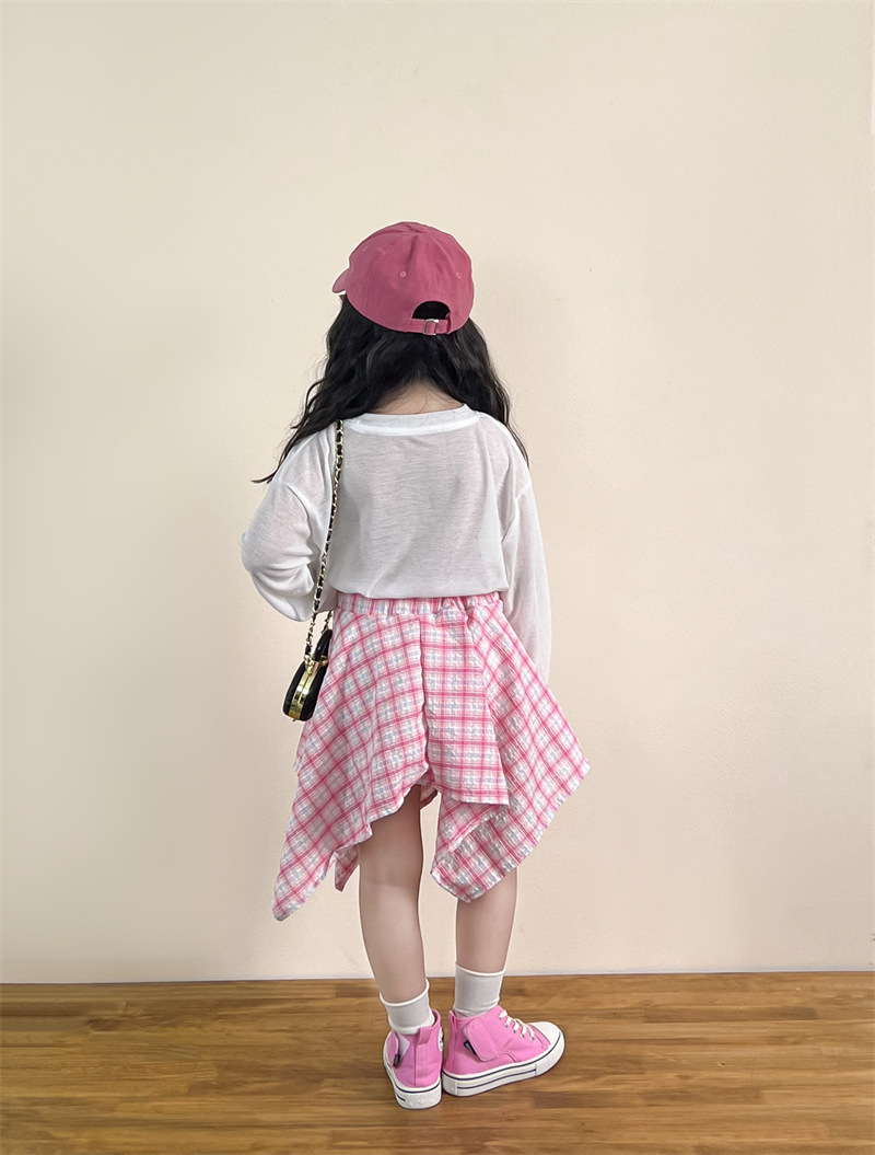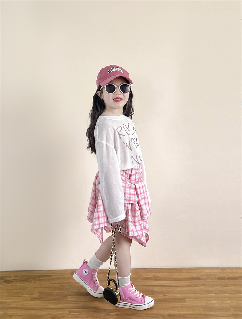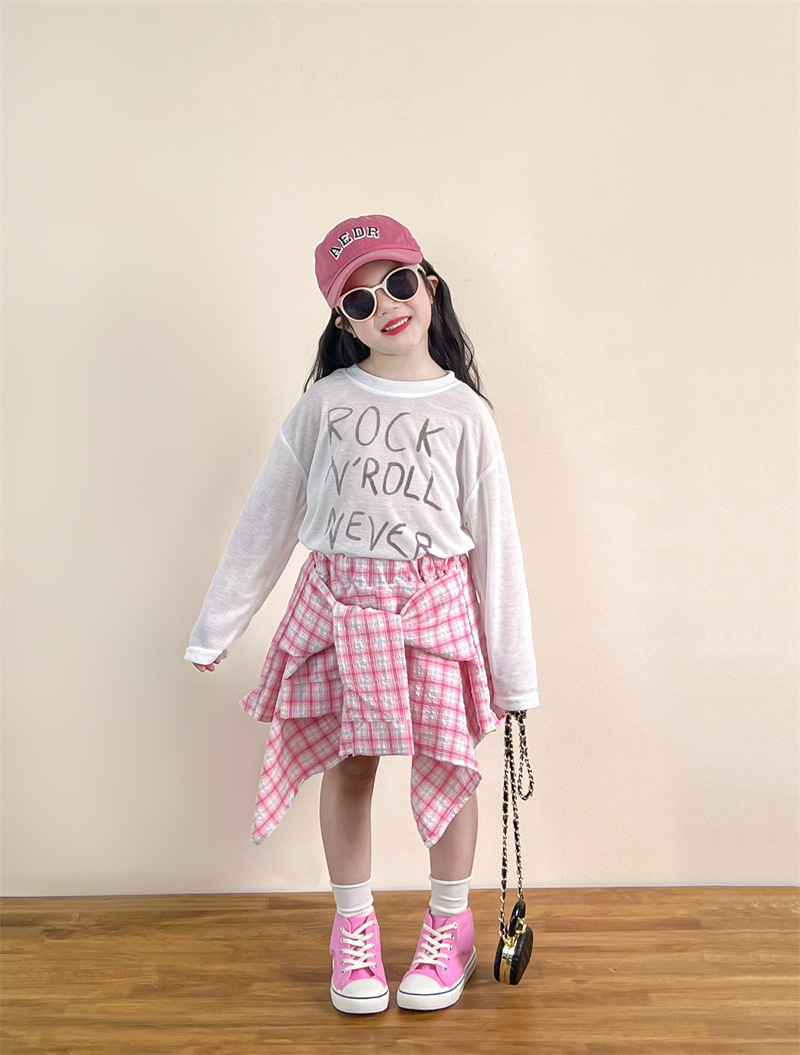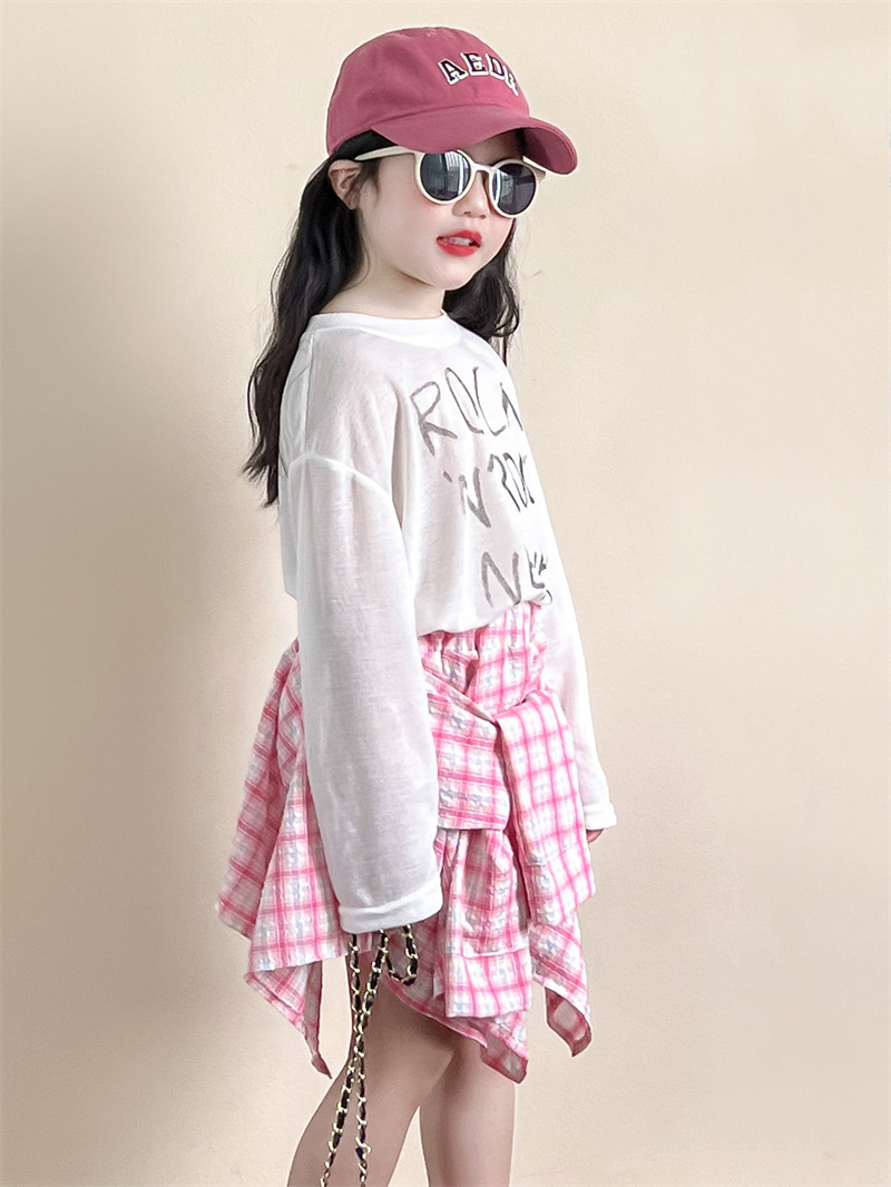 2025 새로운 한국 스타일 얇은 인쇄 된 편지 선 스크린 티셔츠 아카데미 스타일 파우더 쌍 불규칙한 높은 허리 스커트 바지