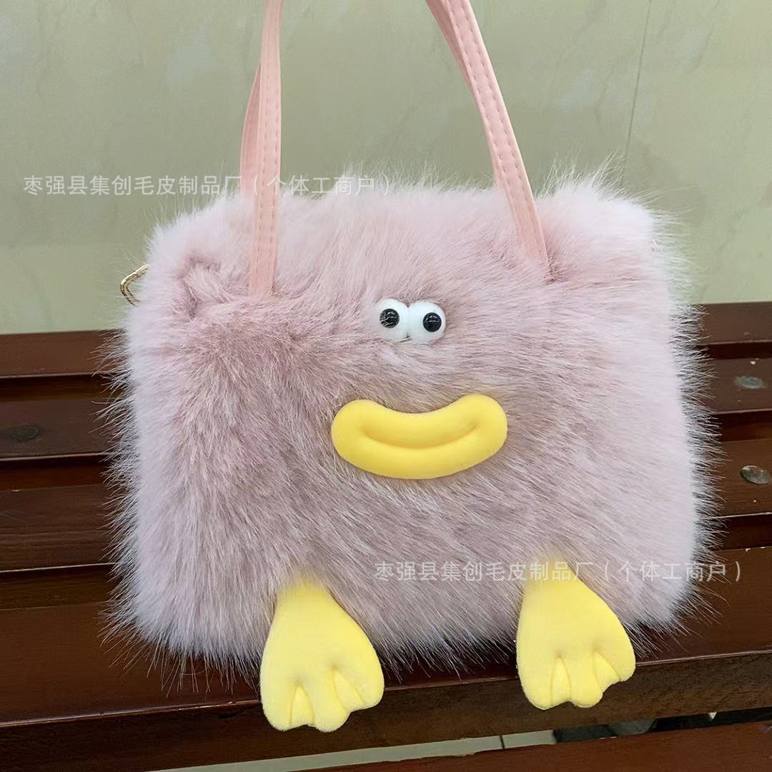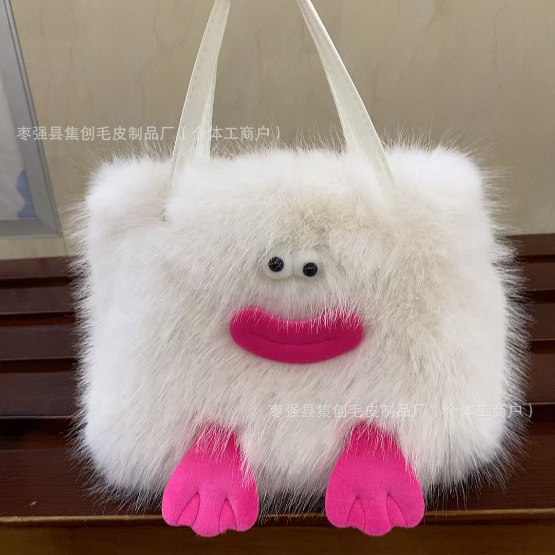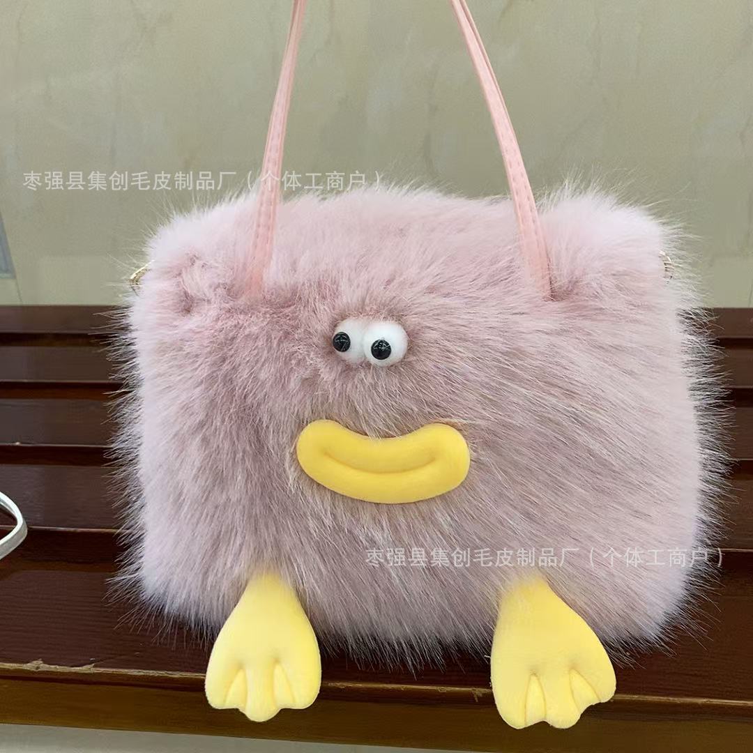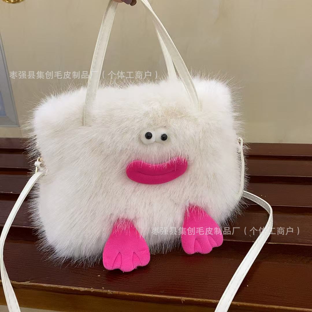새로운 맞춤형 인터넷 연예인 소시지 입 플러시 가방 플러시 귀여운 소녀 모피 재미 있은 어깨 크로스 바디 핸드백