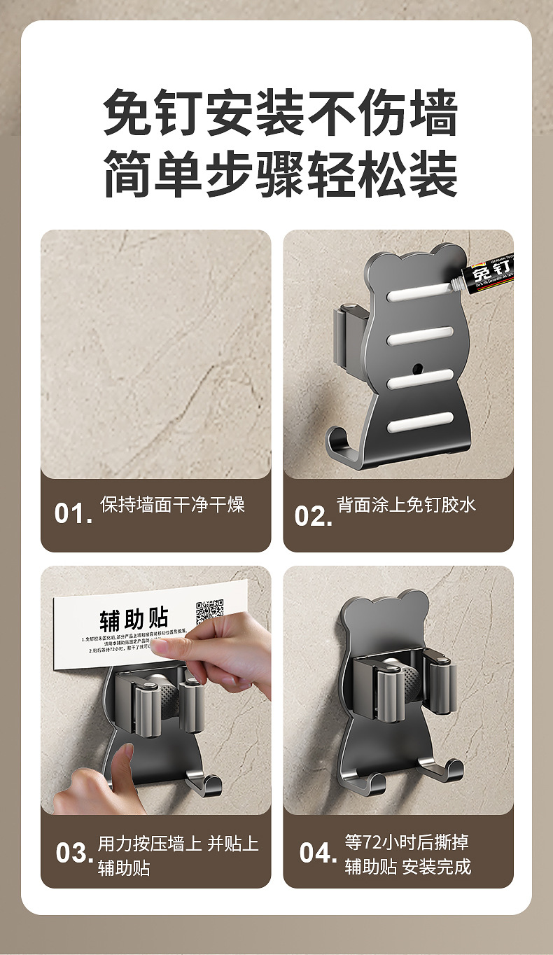 공장 직송 걸레 클립, 펀치 없는 걸레 걸이, 걸레 걸이, 빗자루 걸이, 아마존 벽걸이형 고정형 빗자루 걸이
