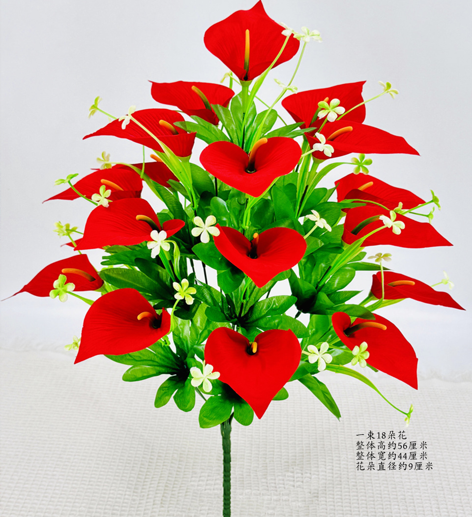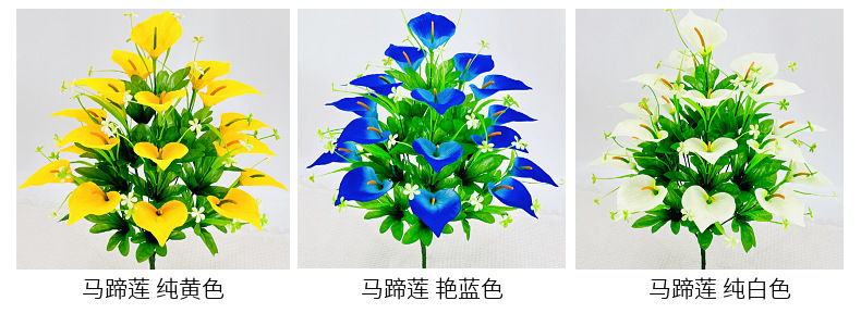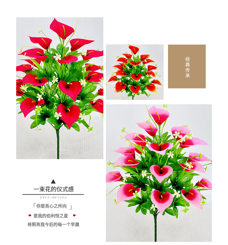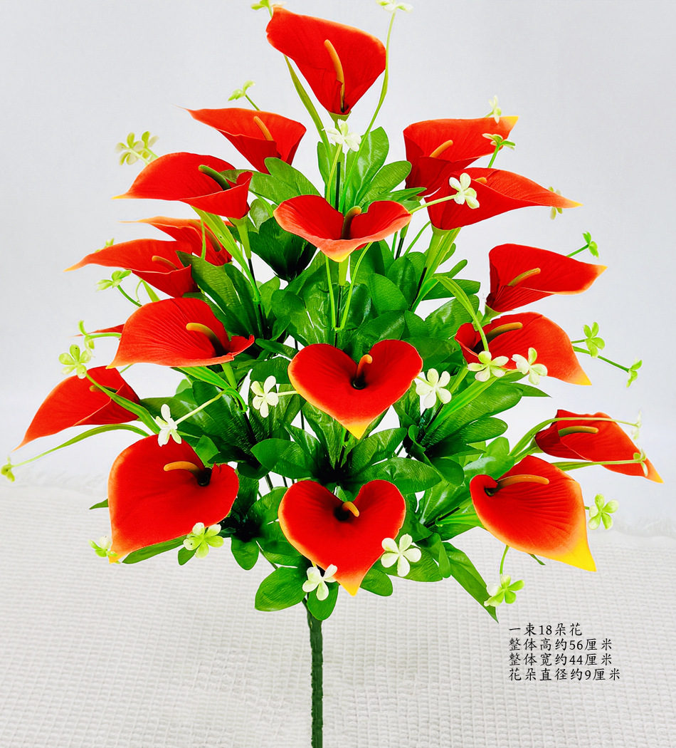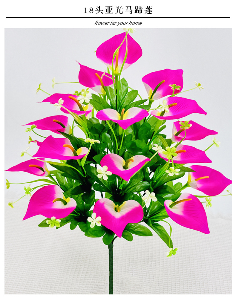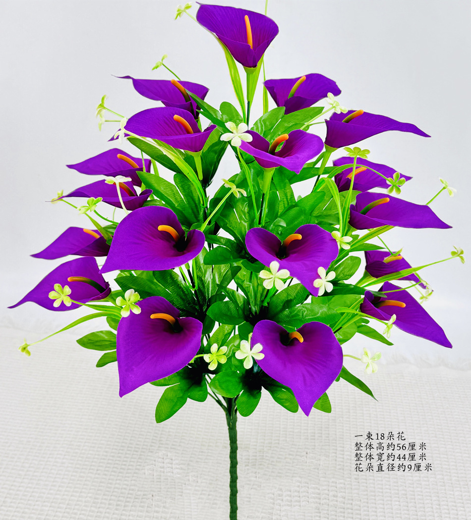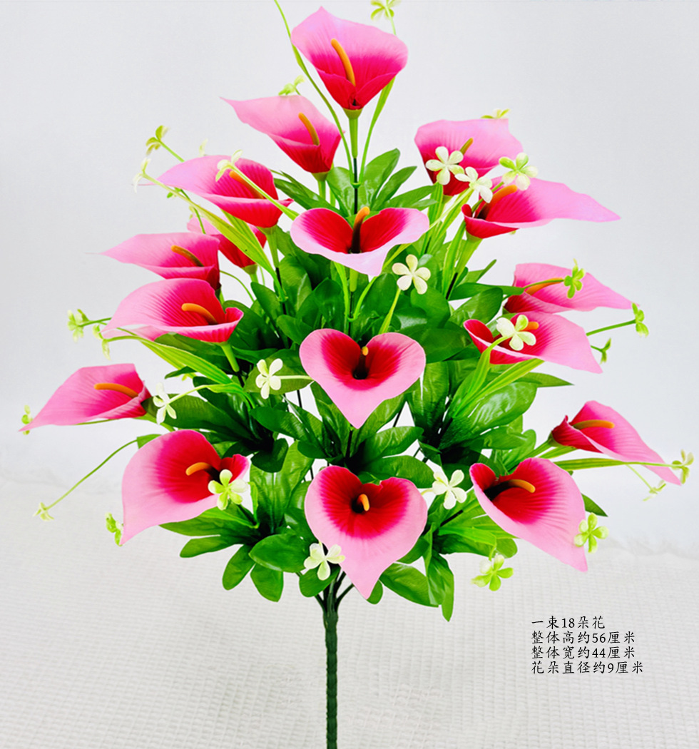 시뮬레이션 꽃 18 머리 무광택 천 칼라 릴리 꽃다발 홈 거실 장식 꽃 입구 안뜰 디스플레이 꽃