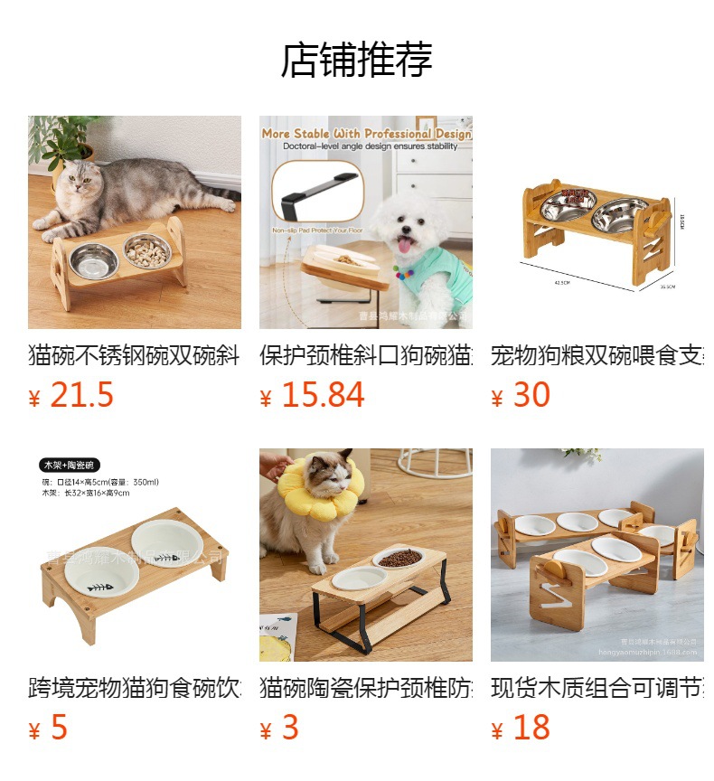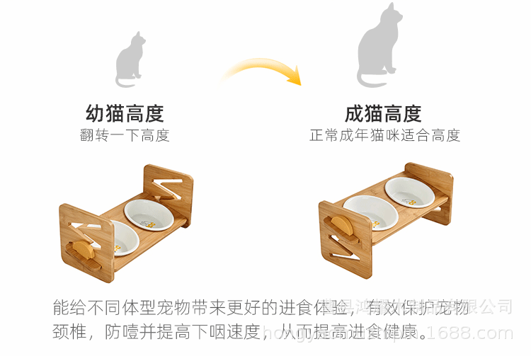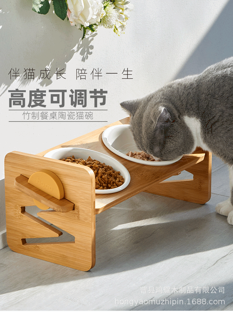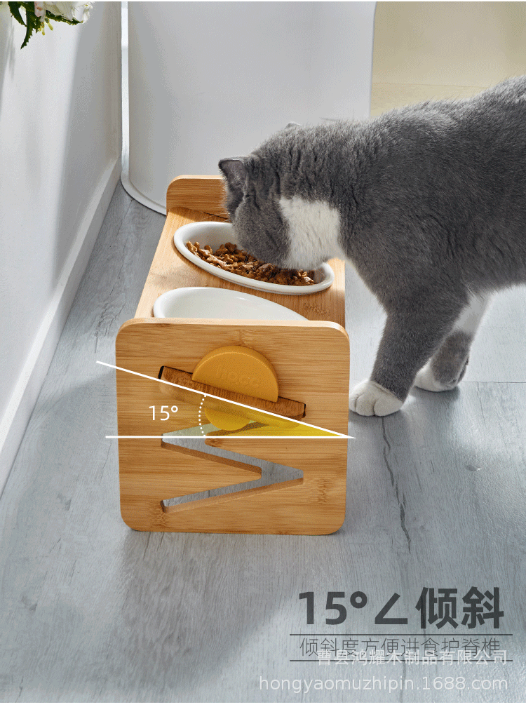 • 두 그릇 통나무 색상 일반 버전 조절 가능한 고양이 그릇 랙