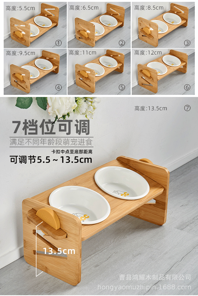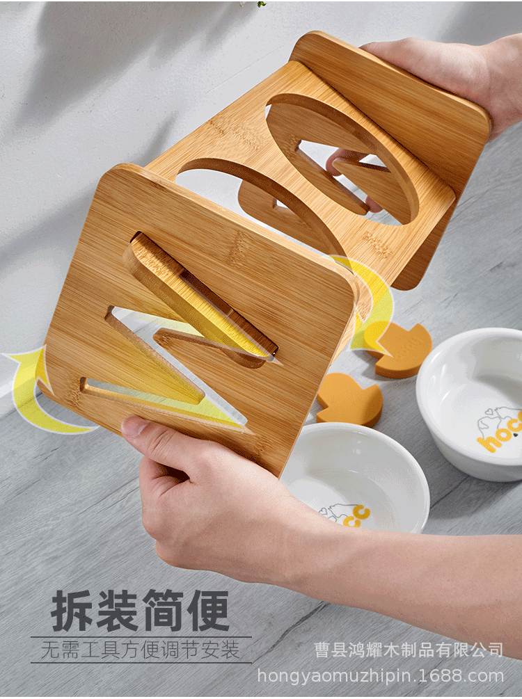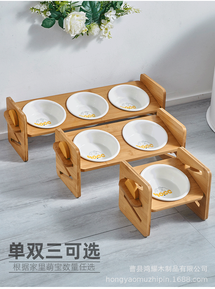 • 나무 색상의 일반 버전 조절 가능한 고양이 그릇 랙 한 그릇