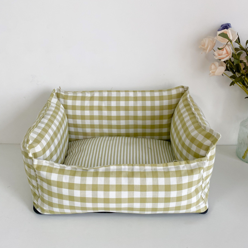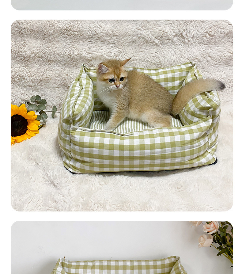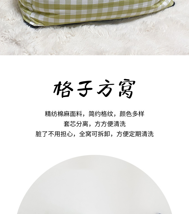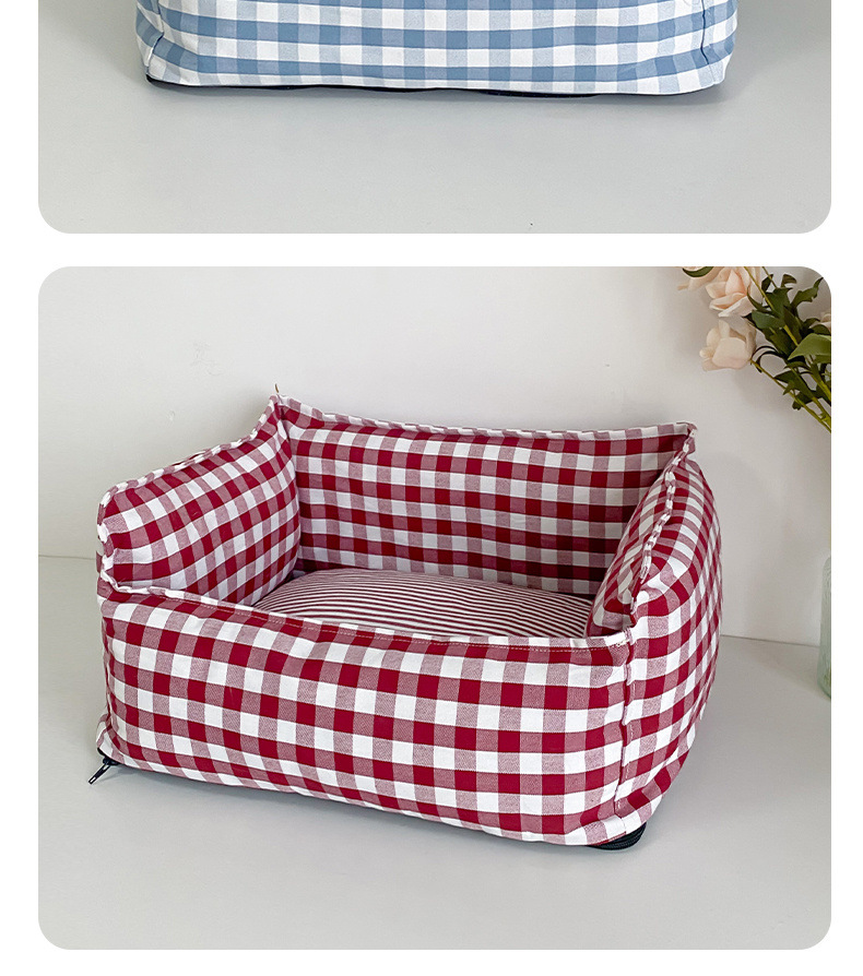 개 개집, 탈부착 및 세탁 가능한 고양이 개집, 사계절 사용 가능한 범용 격자 무늬 스타일 비숑 슈나우저, 방한 및 보온을 위한 인터넷 연예인 애완 동물 개집