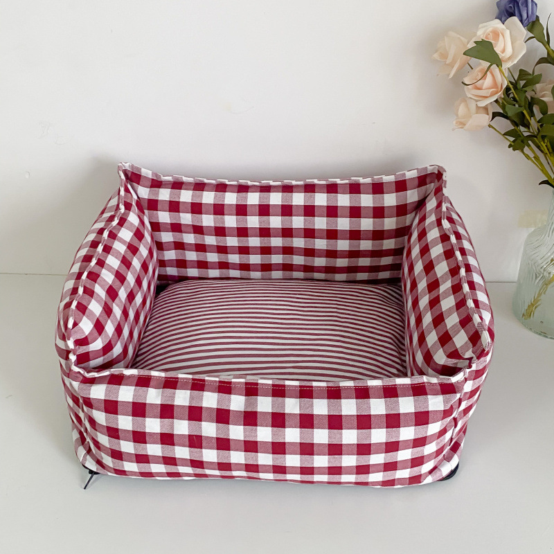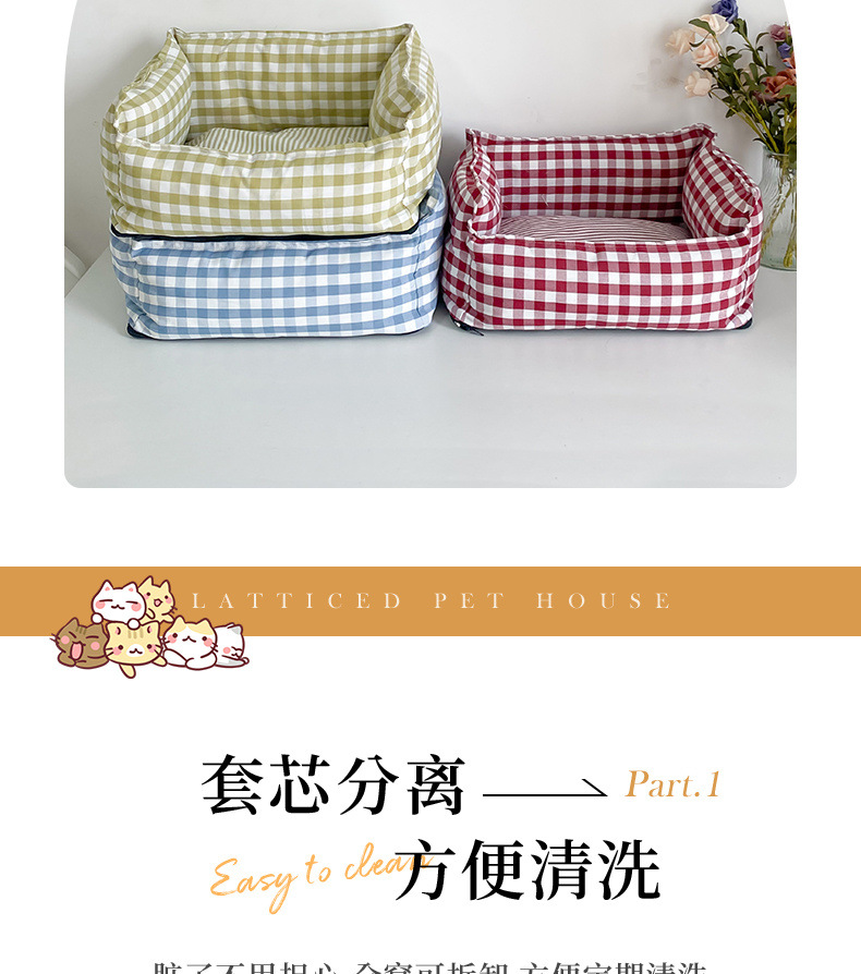 개 개집, 탈부착 및 세탁 가능한 고양이 개집, 사계절 사용 가능한 범용 격자 무늬 스타일 비숑 슈나우저, 방한 및 보온을 위한 인터넷 연예인 애완 동물 개집스토어 가기