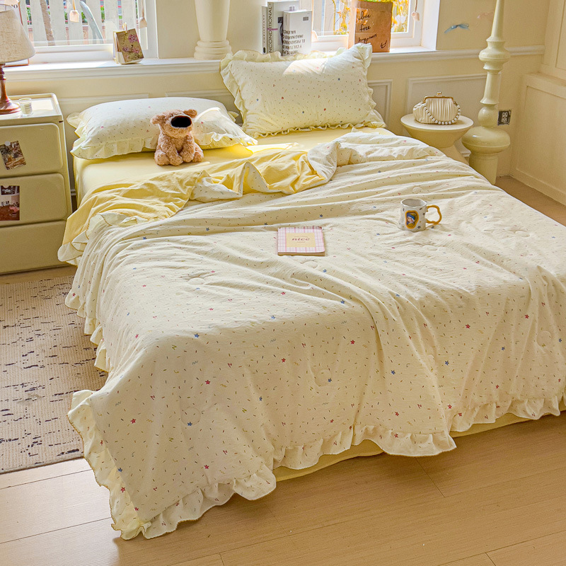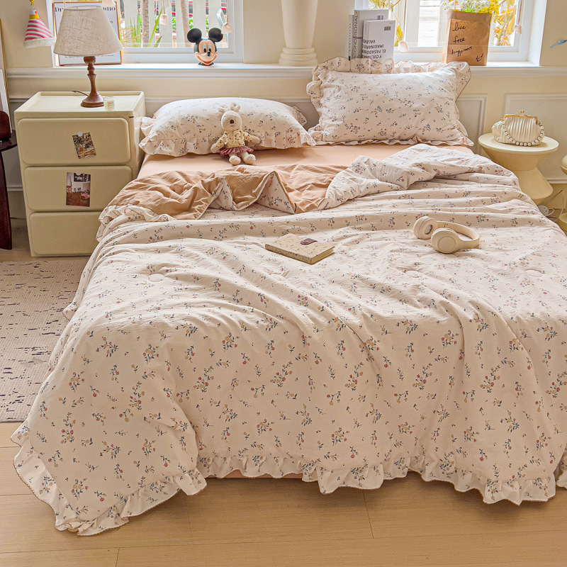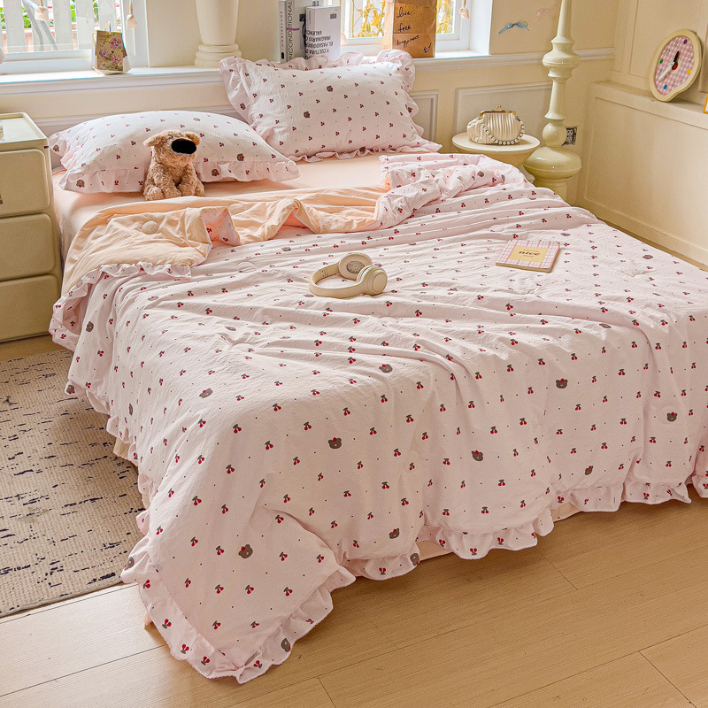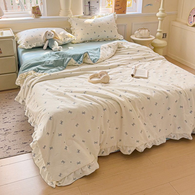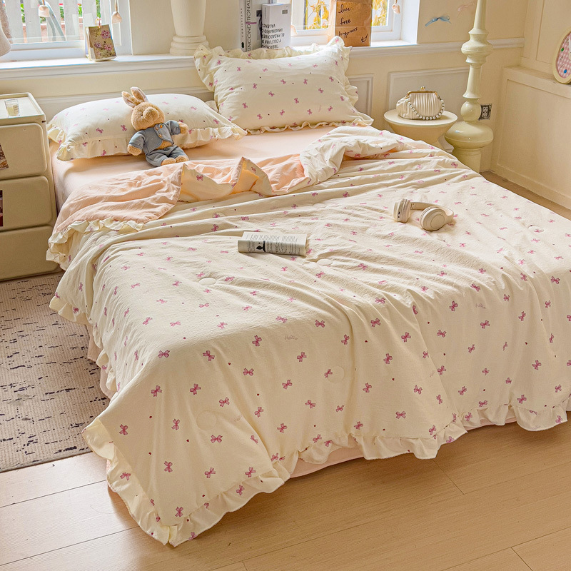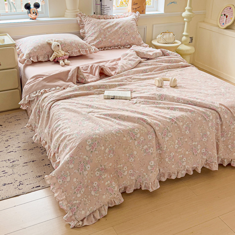 한국식 레이스 코튼 여름 쿨 퀼트 4 피스 세트 인 프린세스 스타일 퓨어 코튼 니트 에어컨 퀼트 여름 얇은 퀼트