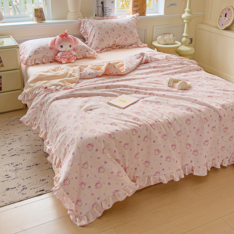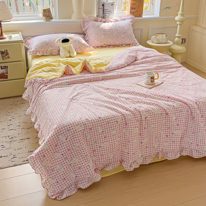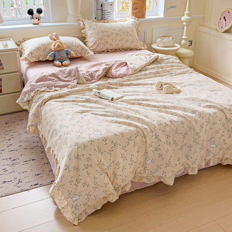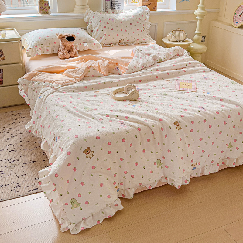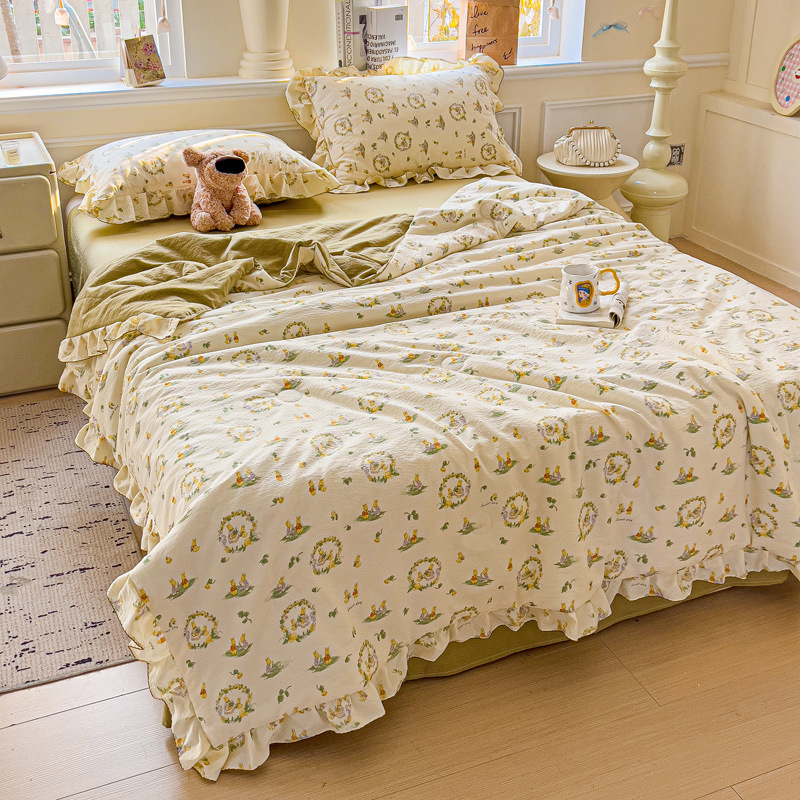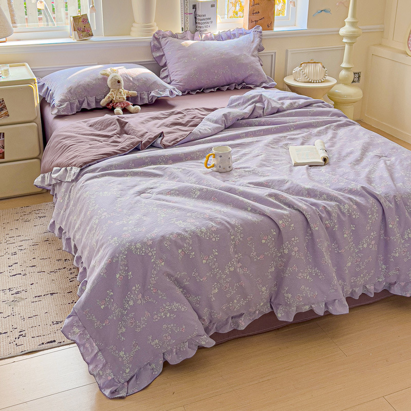 한국식 레이스 코튼 여름 쿨 퀼트 4 피스 세트 인 프린세스 스타일 퓨어 코튼 니트 에어컨 퀼트 여름 얇은 퀼트