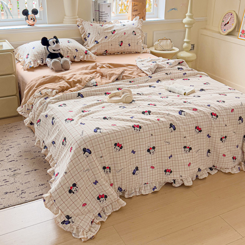 한국식 레이스 코튼 여름 쿨 퀼트 4 피스 세트 인 프린세스 스타일 퓨어 코튼 니트 에어컨 퀼트 여름 얇은 퀼트스토어 가기