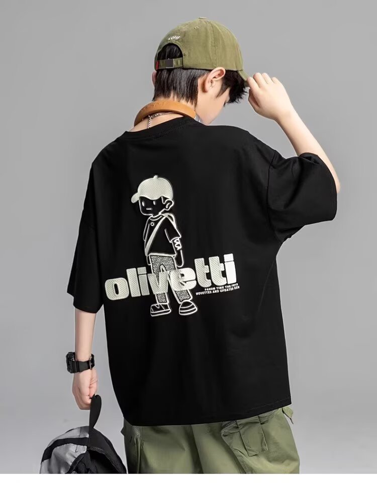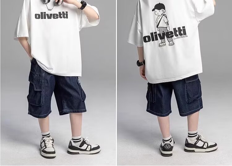 남자들의 여름 반팔 티셔츠 2025 새로운 여름 큰 어린이 소년 여름 캐주얼 탑스토어 가기