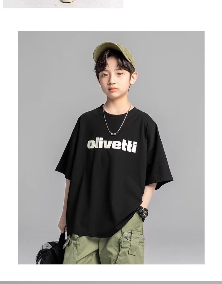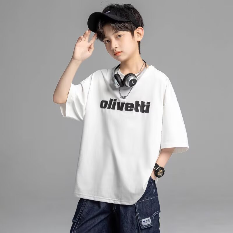 남자들의 여름 반팔 티셔츠 2025 새로운 여름 큰 어린이 소년 여름 캐주얼 탑