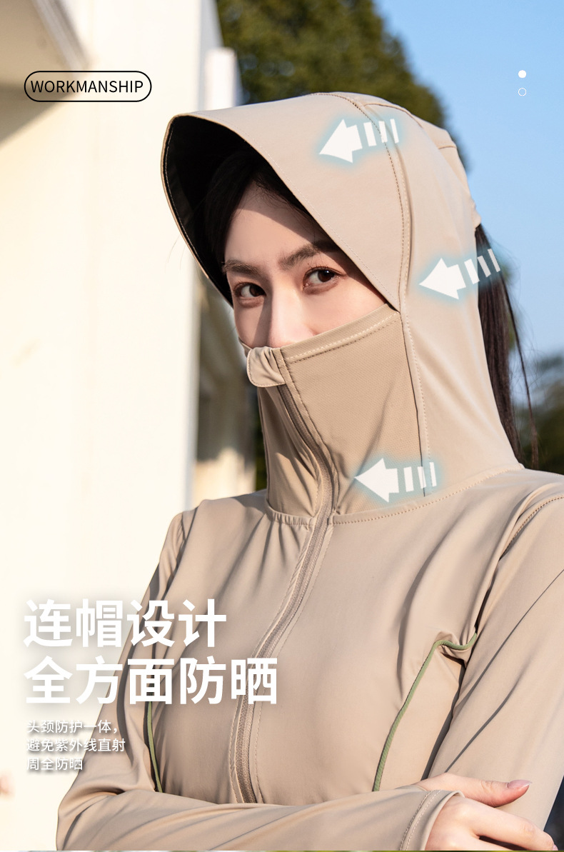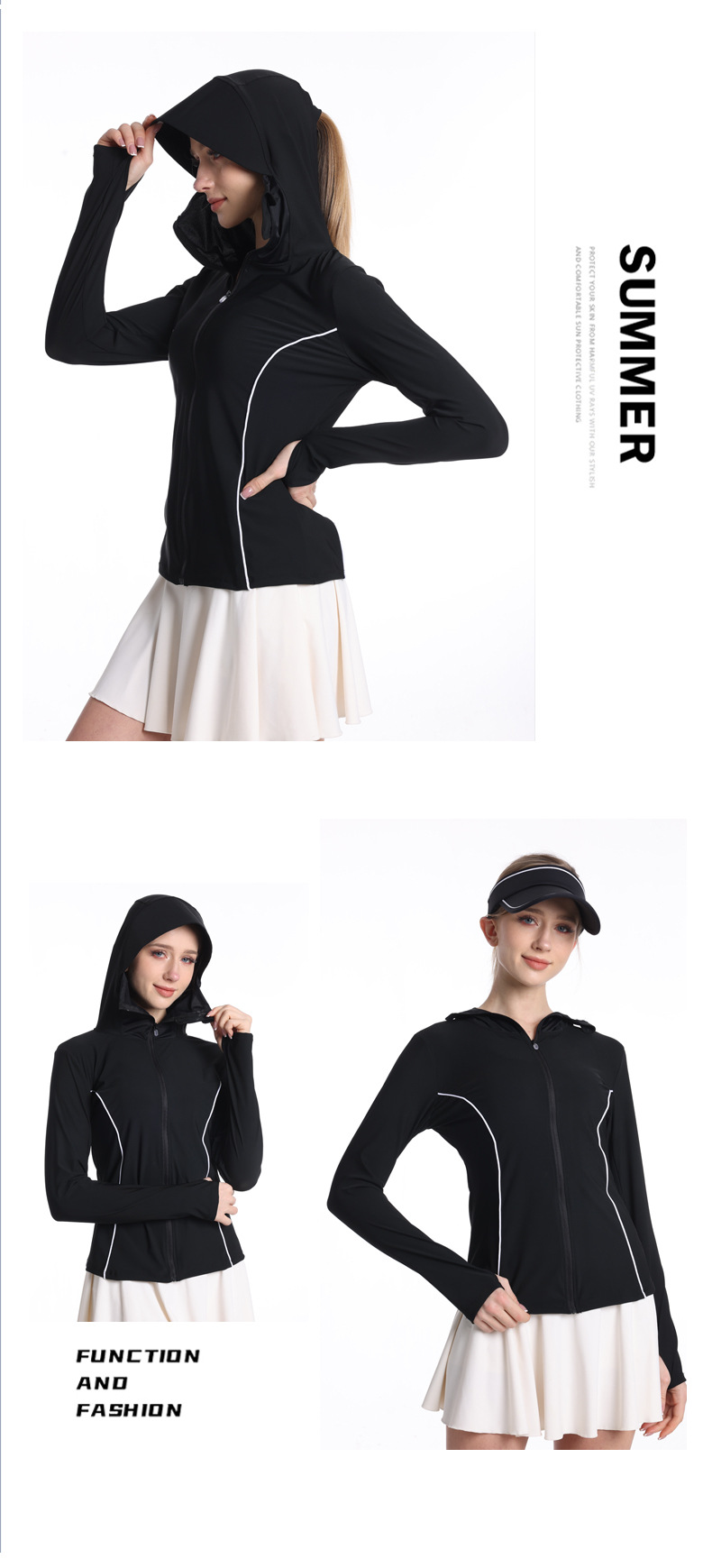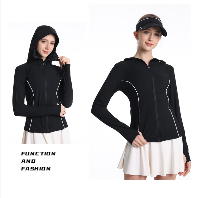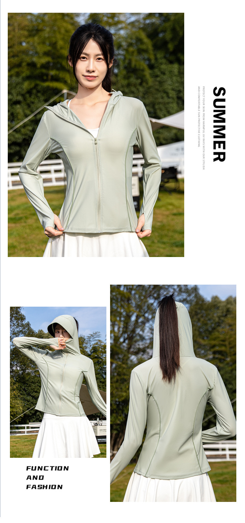 여성용 슬림핏 후드 자외선 차단 의류, 자외선 차단, 입체적인 커팅, 고탄성, 통기성, 속건성 요가복, 아이스 실크, 시원한 여름