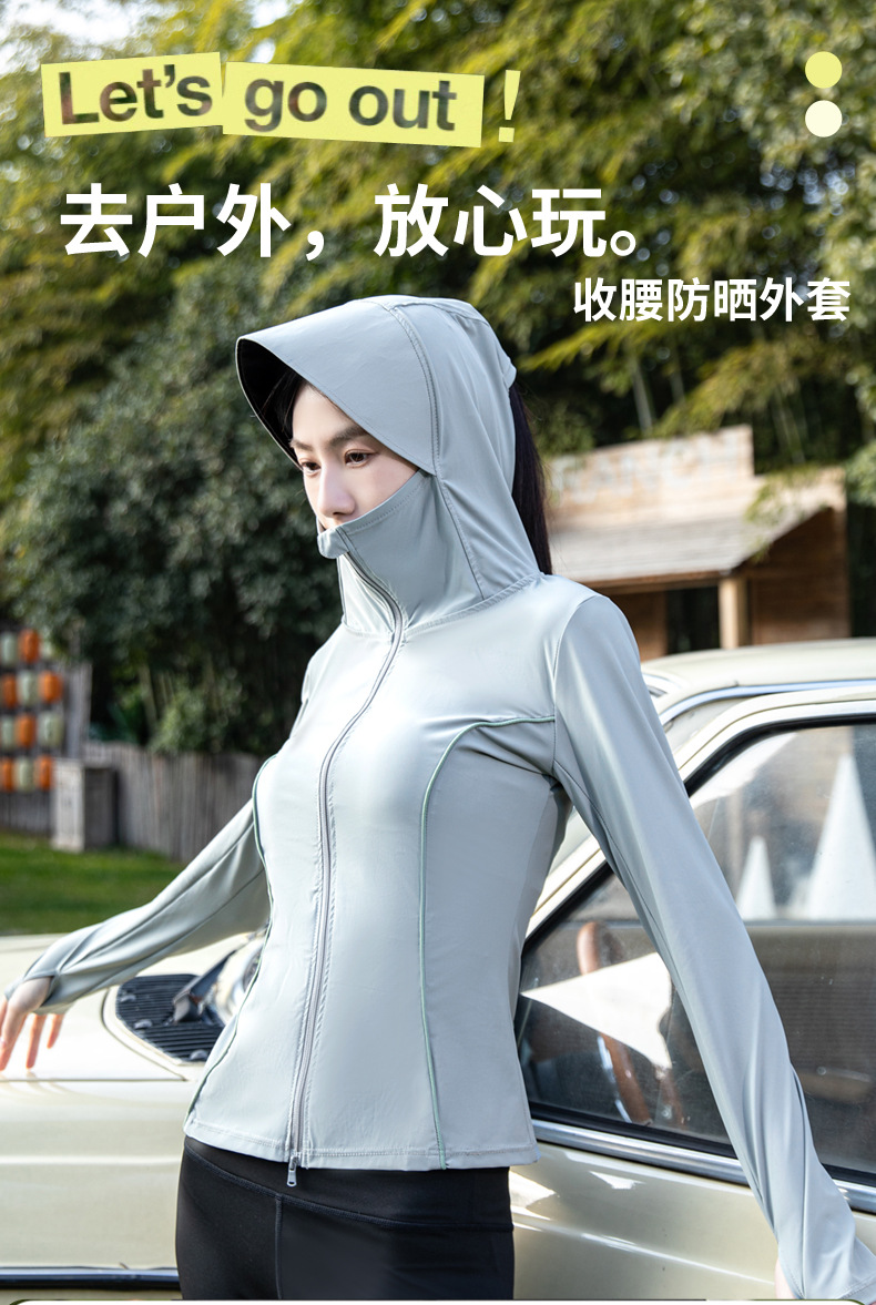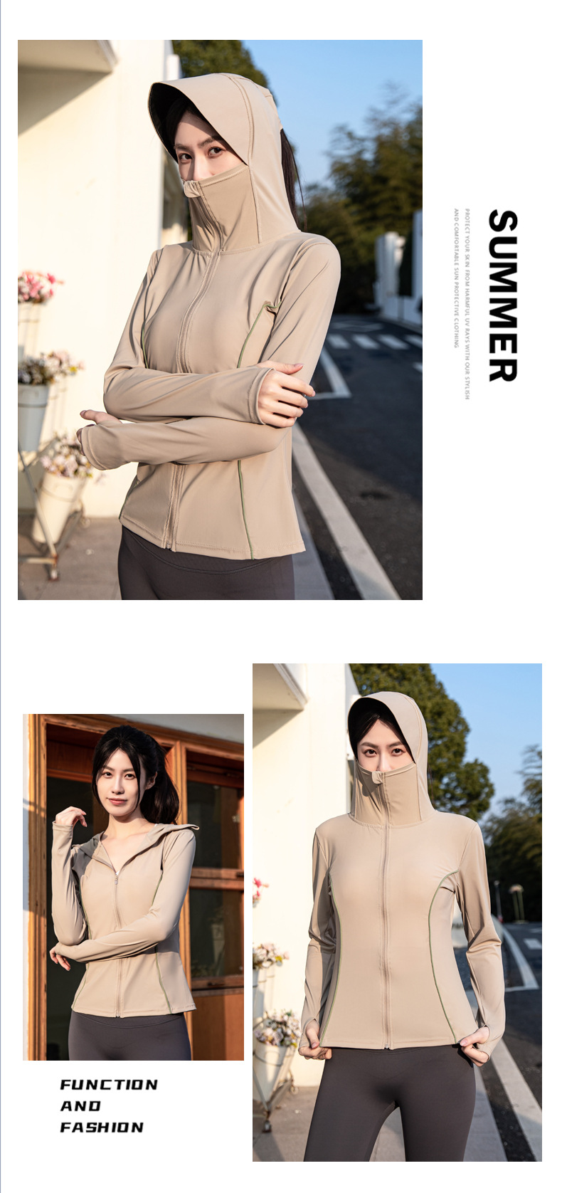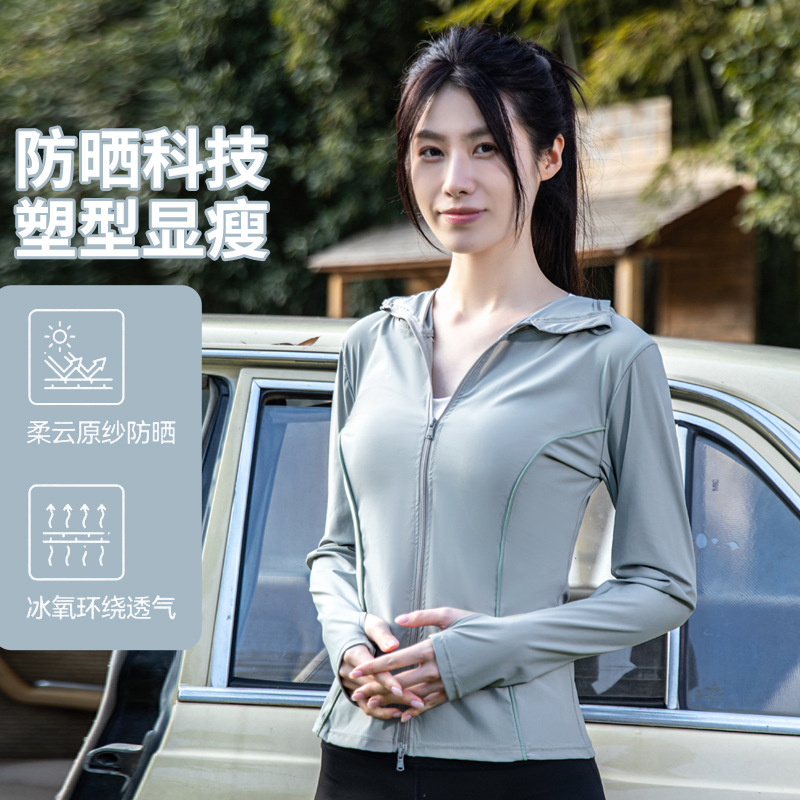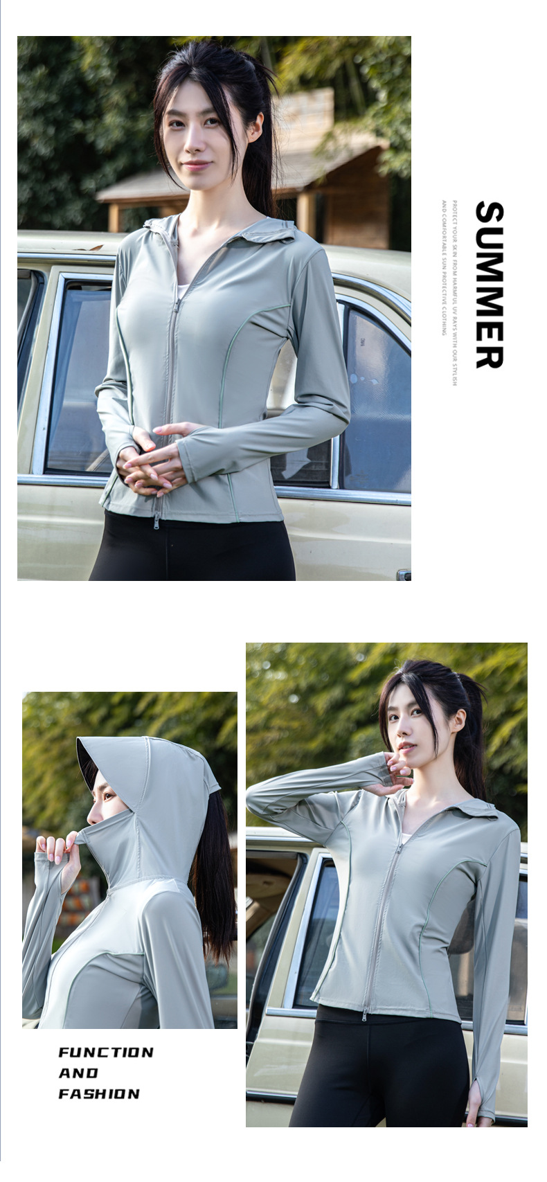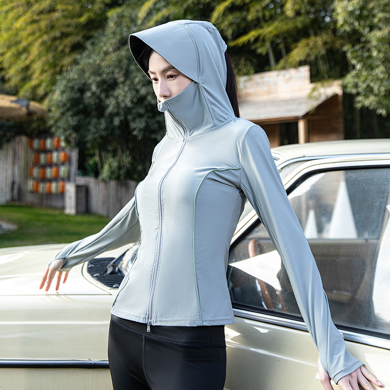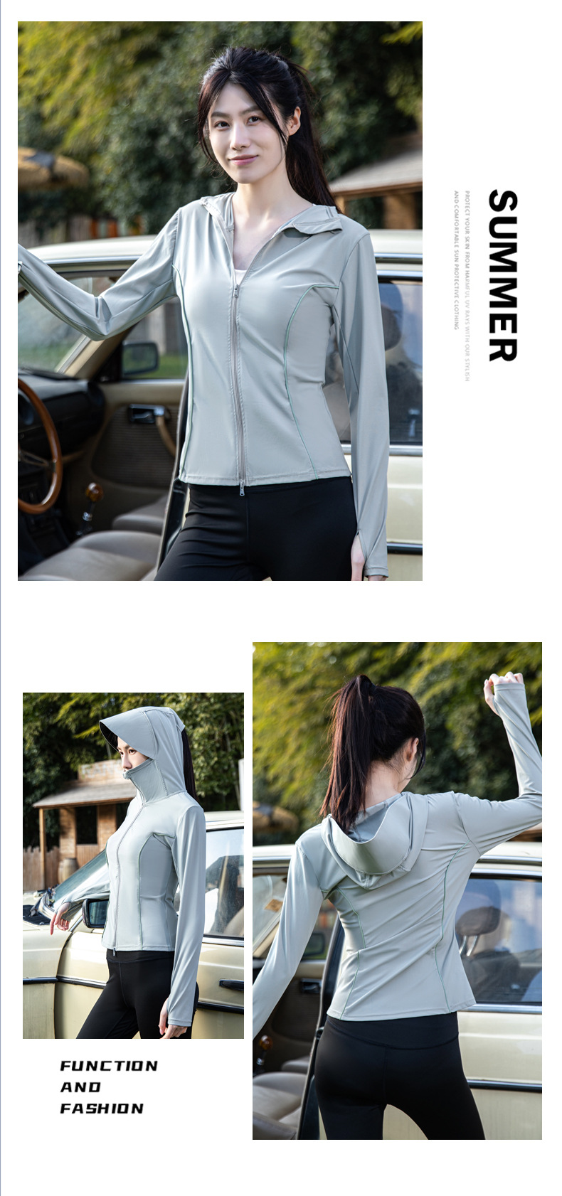 여성용 슬림핏 후드 자외선 차단 의류, 자외선 차단, 입체적인 커팅, 고탄성, 통기성, 속건성 요가복, 아이스 실크, 시원한 여름스토어 가기