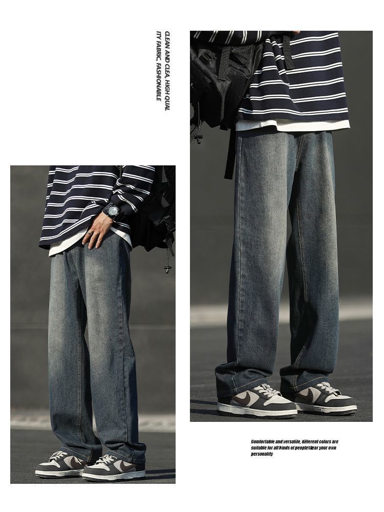 남성용 청바지 봄 여름 새로운 스타일 루즈 스트레이트 와이드 팬츠 트렌디한 복고풍 다용도 캐주얼 남아용 바지스토어 가기