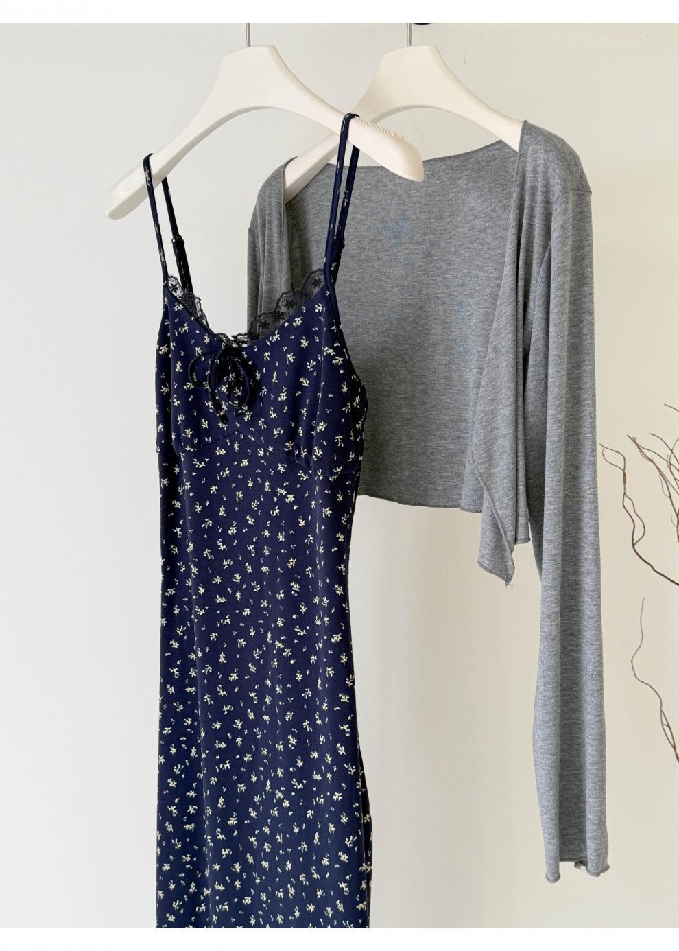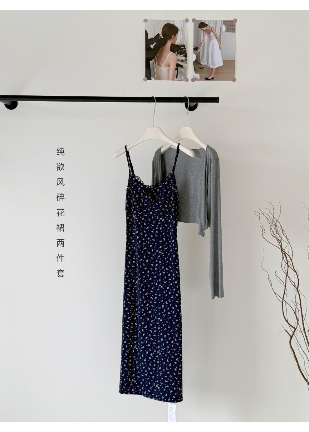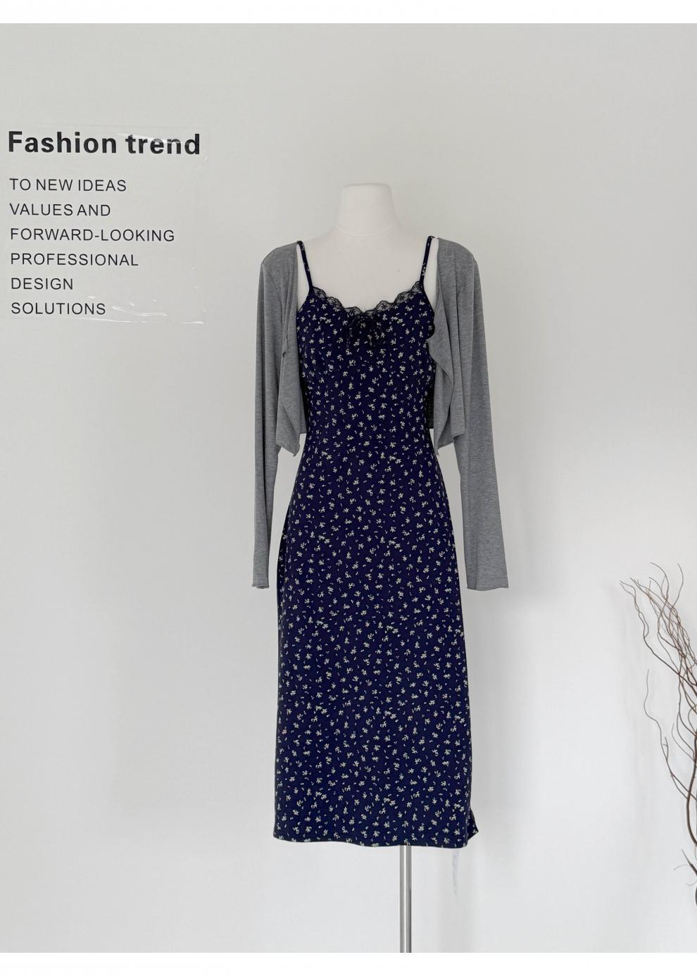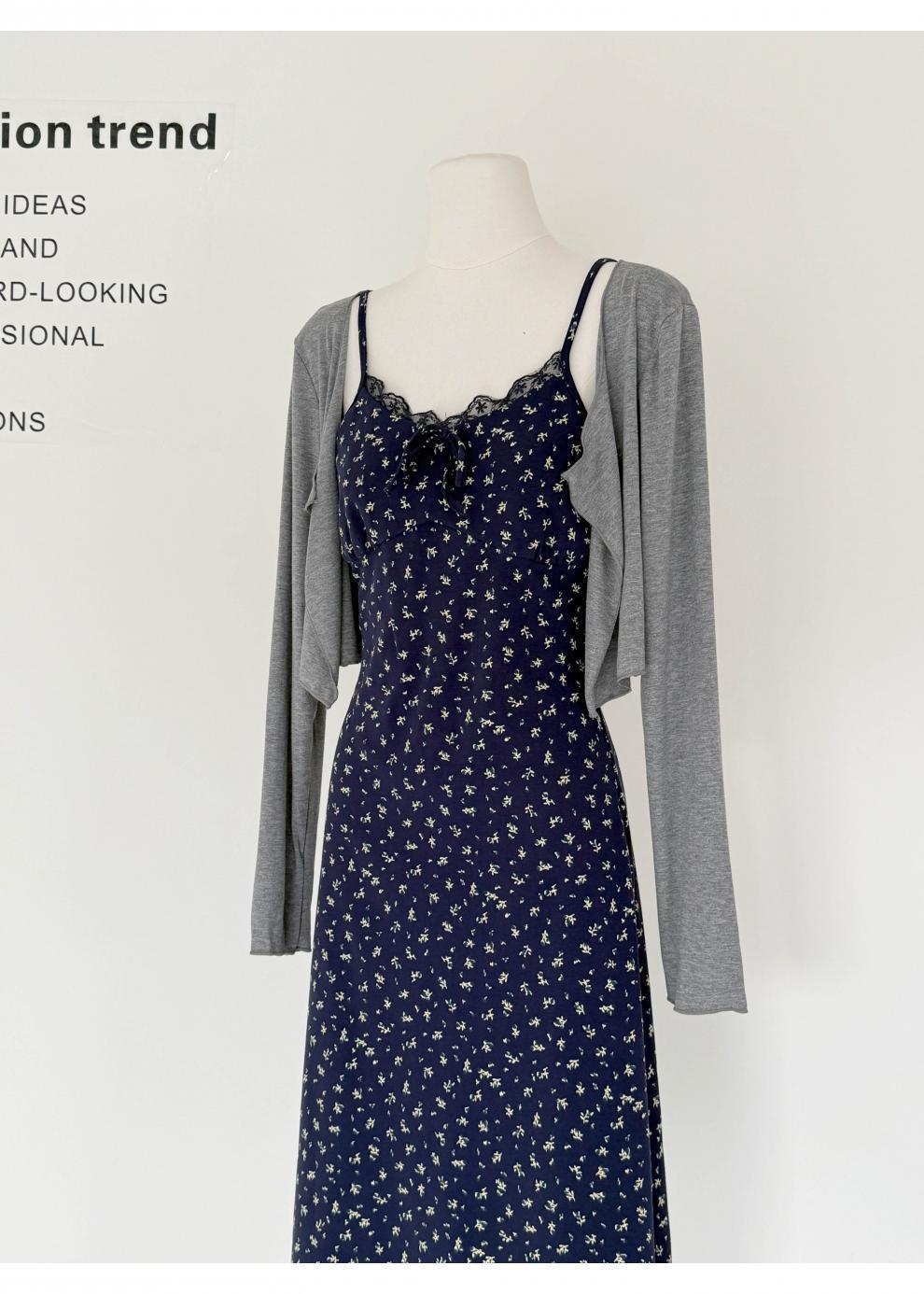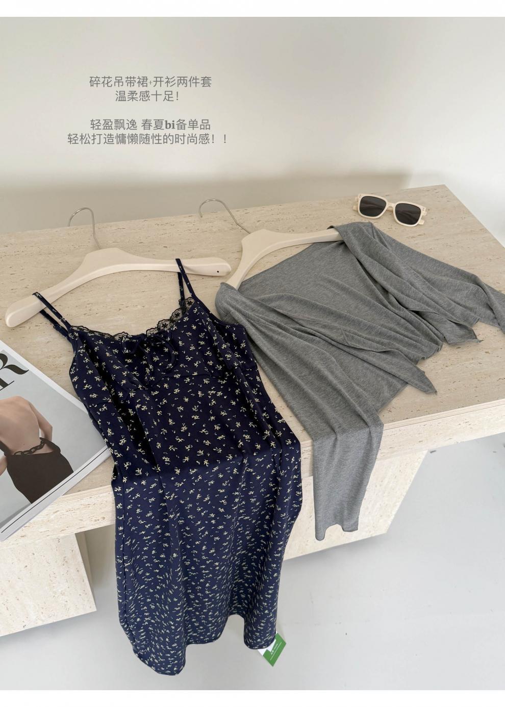 청담동 여고생 한국 스타일 순수한 꽃무늬 원피스 여름 슬림핏 끈 원피스+가디건 세트 우아함