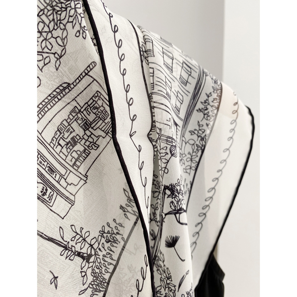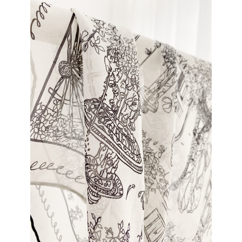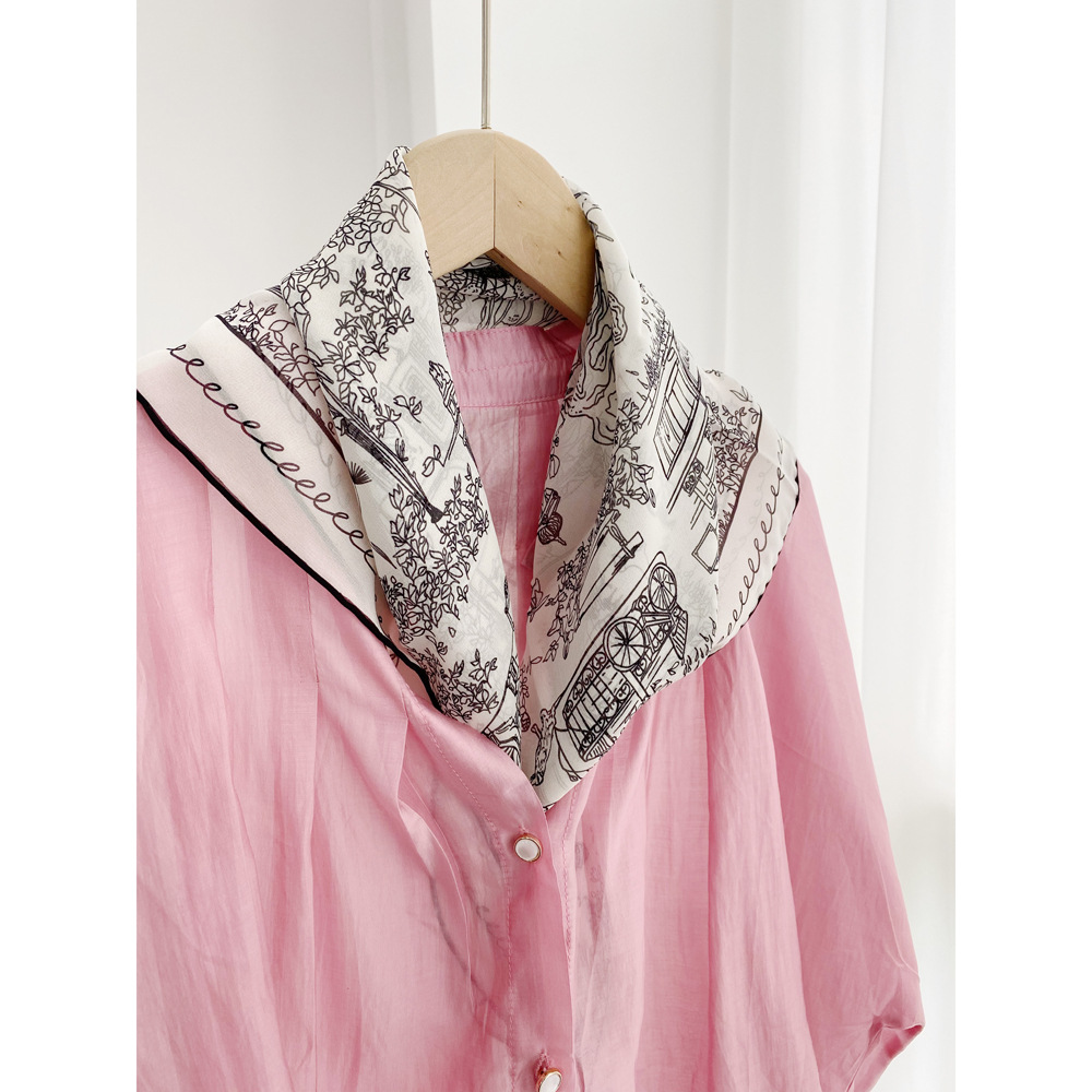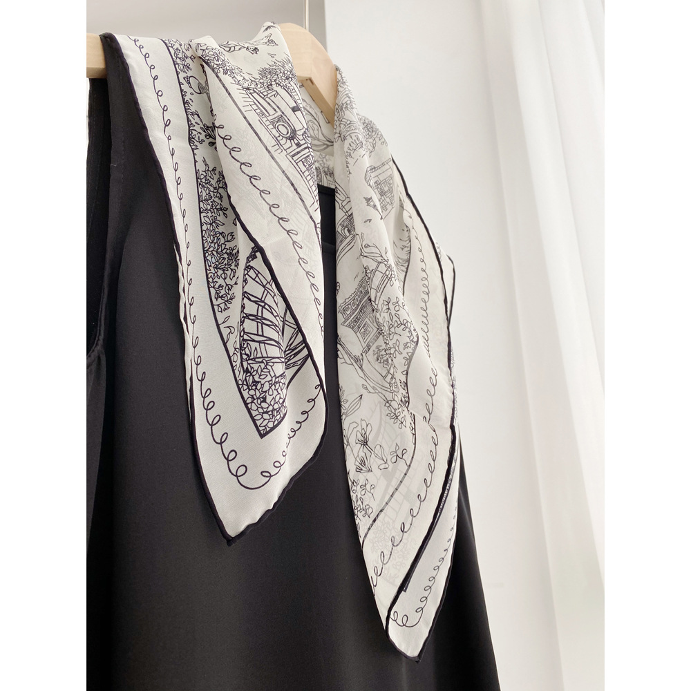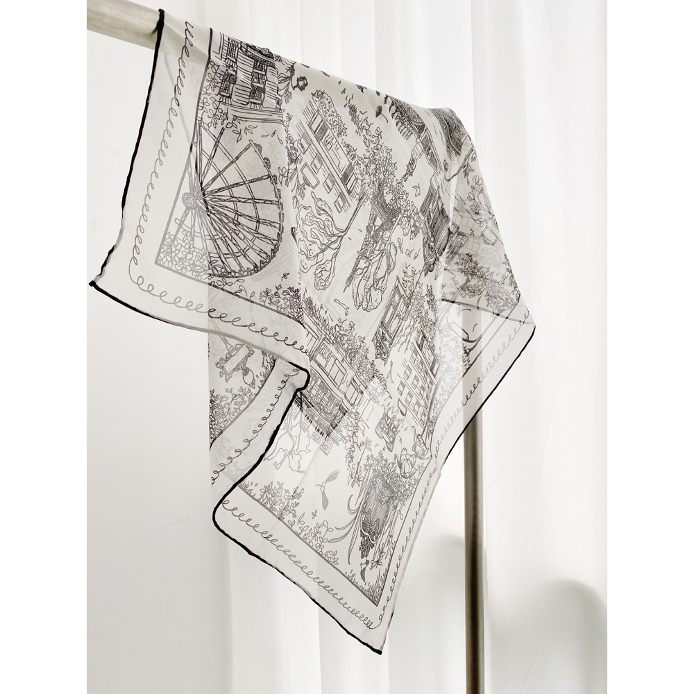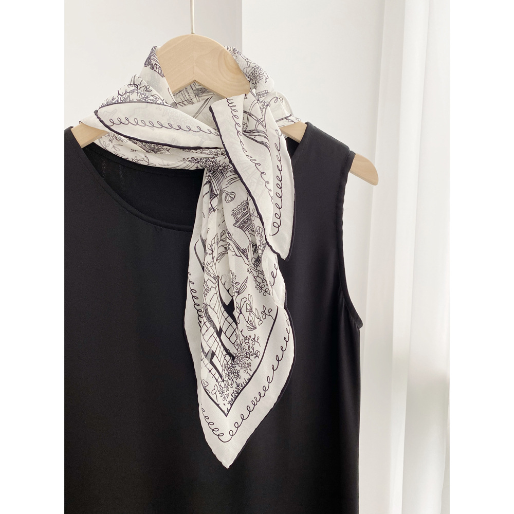 2025 새로운 스타일 실크 스퀘어 스카프 얇은 선 스크린 목도리 좋은 일치하는 목 보호 스카프 스케치