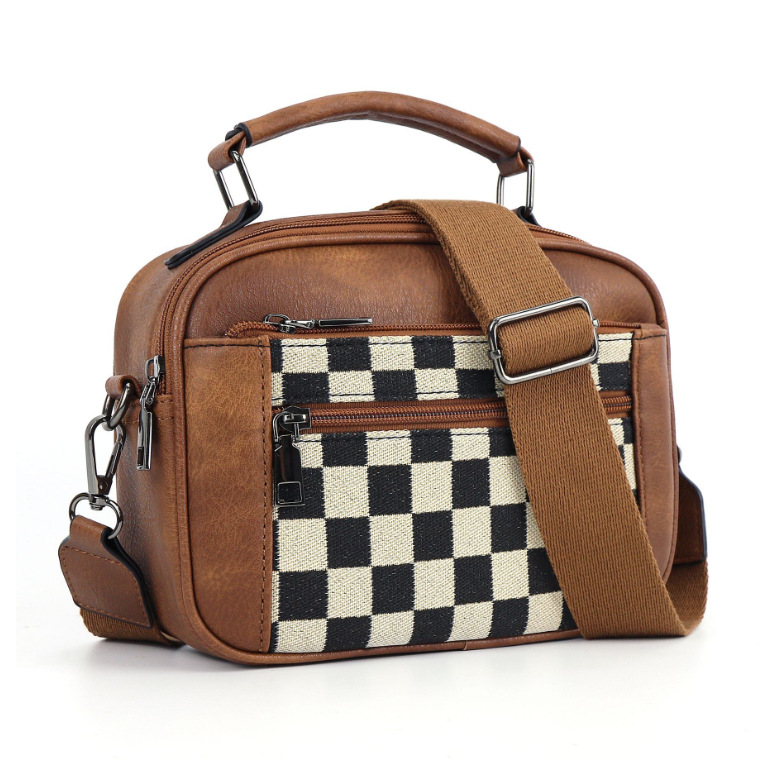 크로스보더 아마존 스몰 체크무늬 백 크로스백 PU 배색 여성 숄더백 지갑 조절 가능한 어깨끈