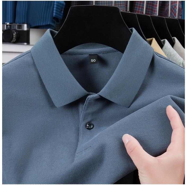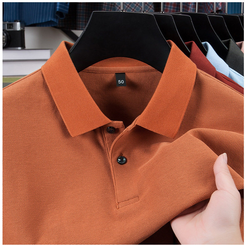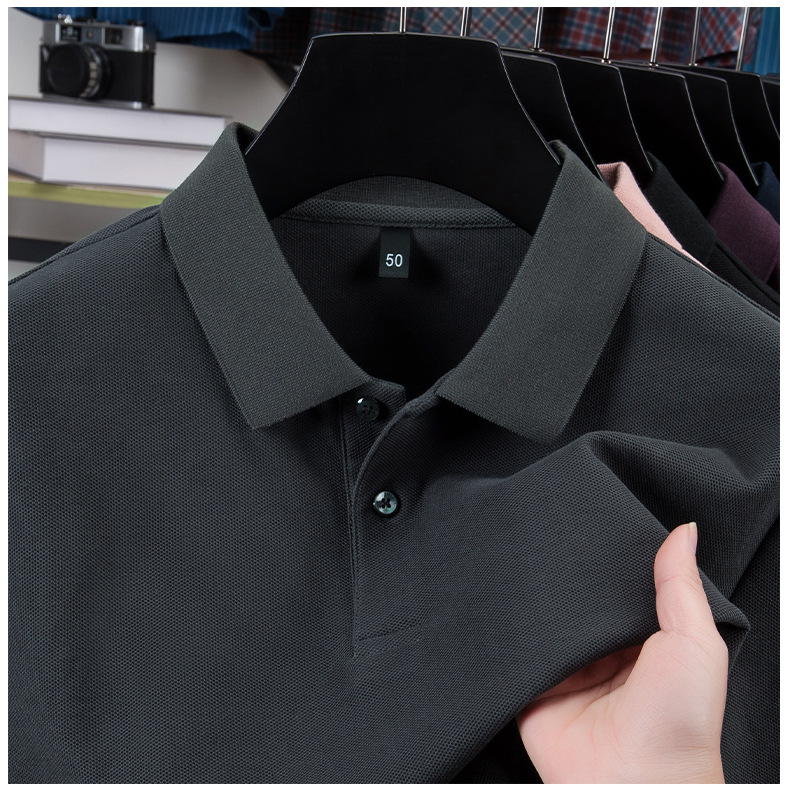 순수 코튼 티셔츠 반팔 남성 2025 여름 신작 비즈니스 캐주얼 옷깃 솔리드 컬러 머서라이즈 코튼 남성 티셔츠 남성 의류스토어 가기