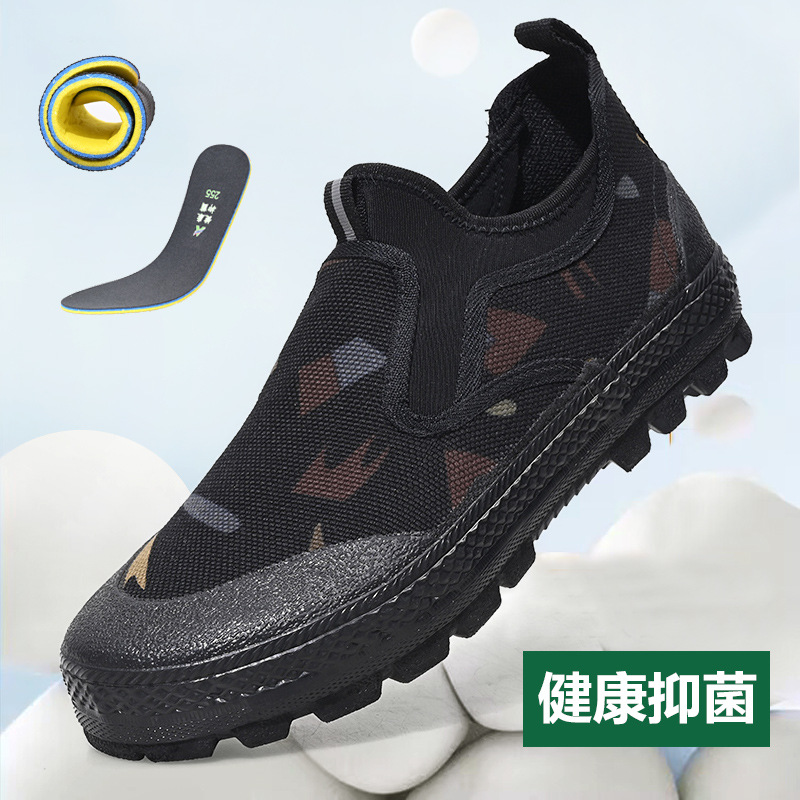 2025년 신형 남녀 슬립온 신발, 위장 야외 작업화, 내마모성 미끄럼 방지 건설 현장 작업화, 노동 보호 고무 신발