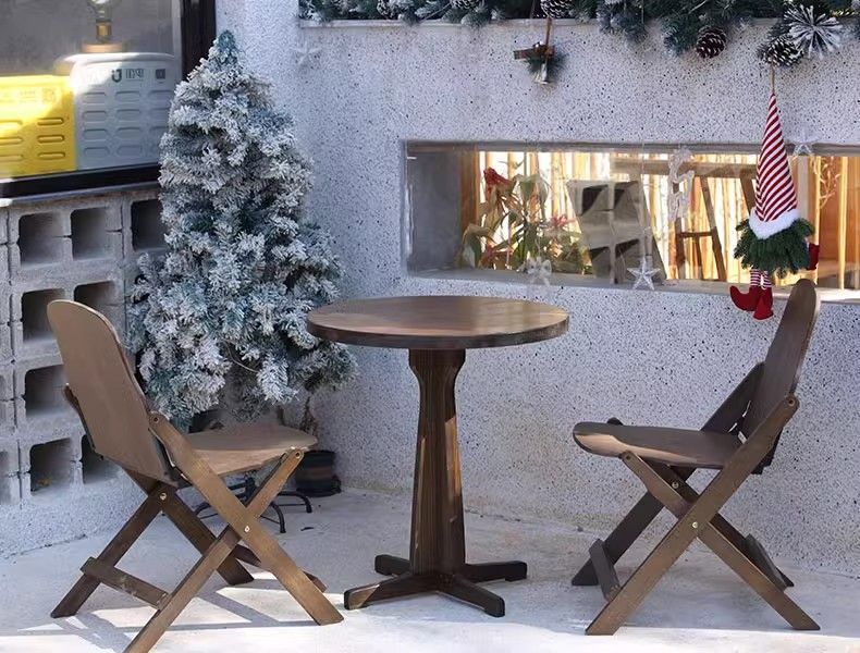 복고풍 단단한 나무 테이블과 의자 조합 거실 발코니 사각형 테이블 작은 가정용 식탁 테이블 원형 테이블 커피 숍 커피 테이블스토어 가기