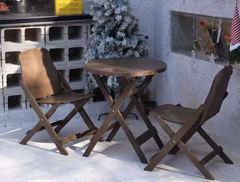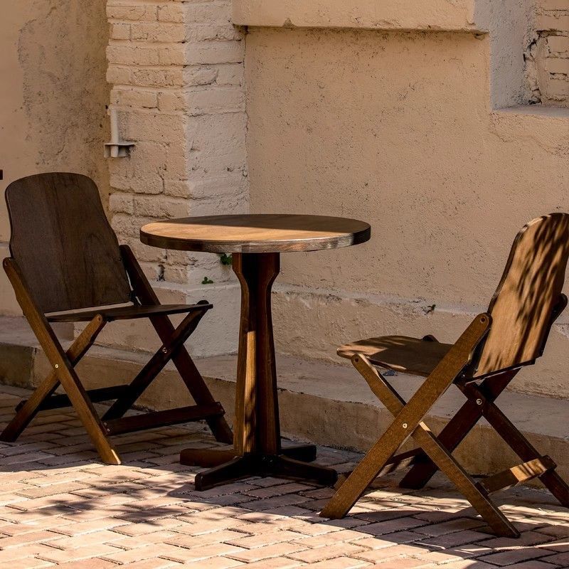 복고풍 단단한 나무 테이블과 의자 조합 거실 발코니 사각형 테이블 작은 가정용 식탁 테이블 원형 테이블 커피 숍 커피 테이블