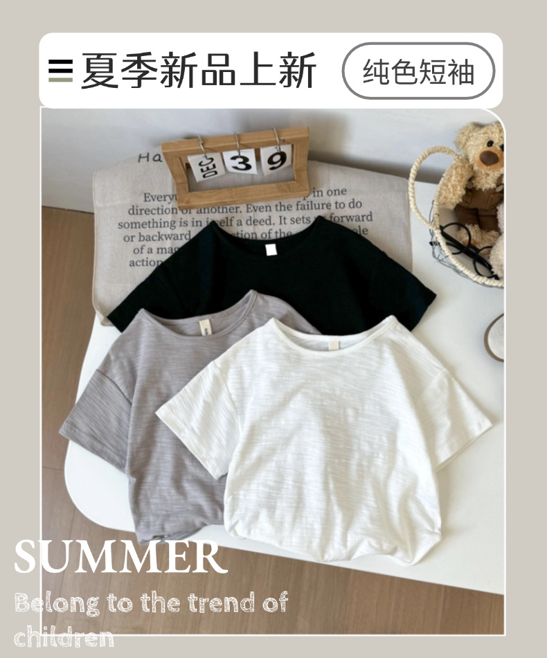 남학생 반팔 2025 여름 신식 서양식 순면 탑 한국식 어린이 올매치 라운드 넥 티셔츠 트렌디 티셔츠스토어 가기