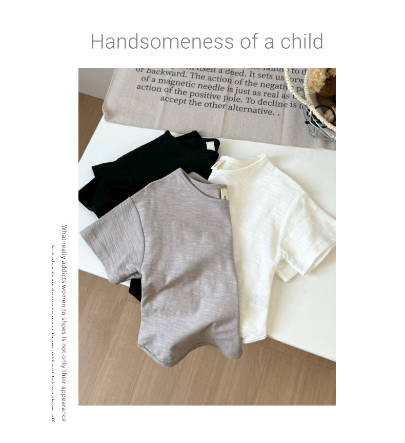 남학생 반팔 2025 여름 신식 서양식 순면 탑 한국식 어린이 올매치 라운드 넥 티셔츠 트렌디 티셔츠