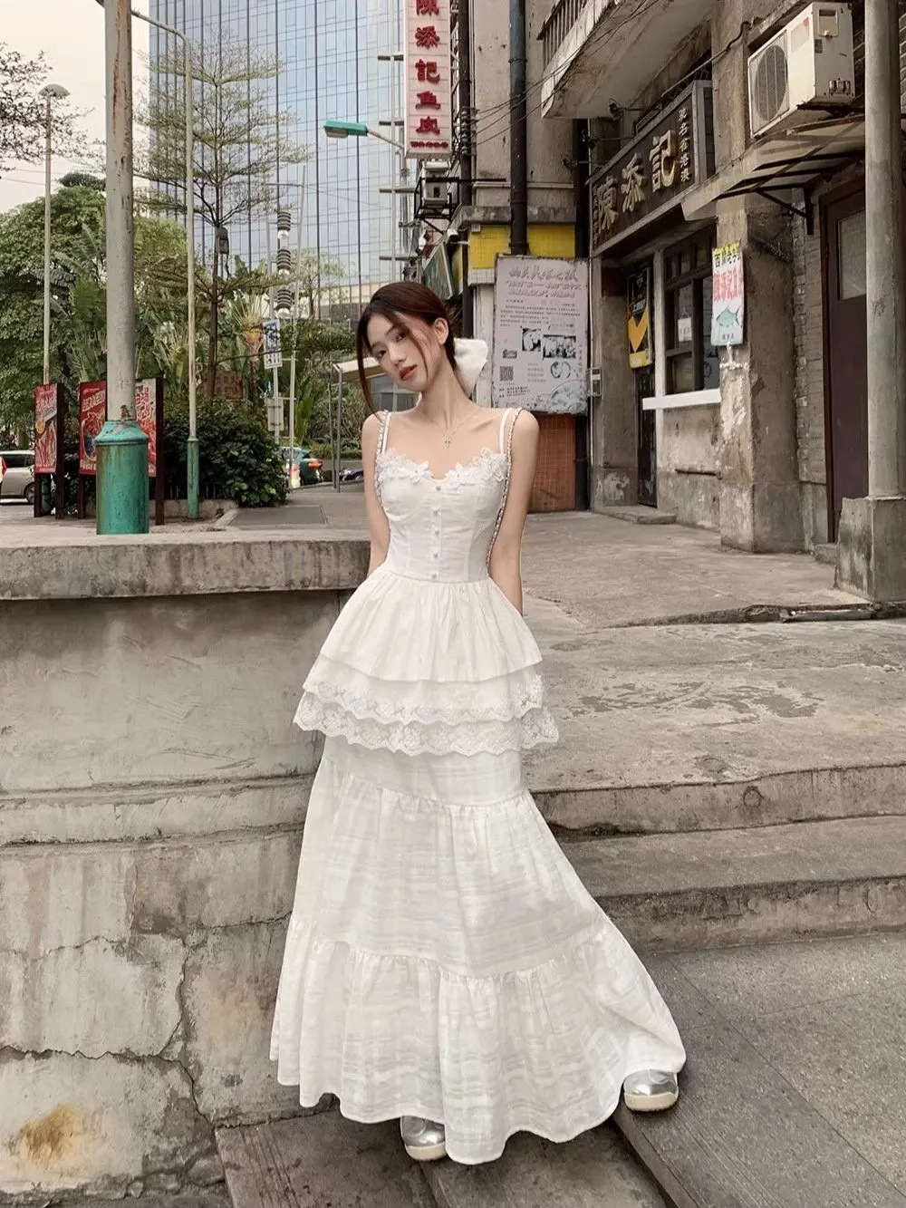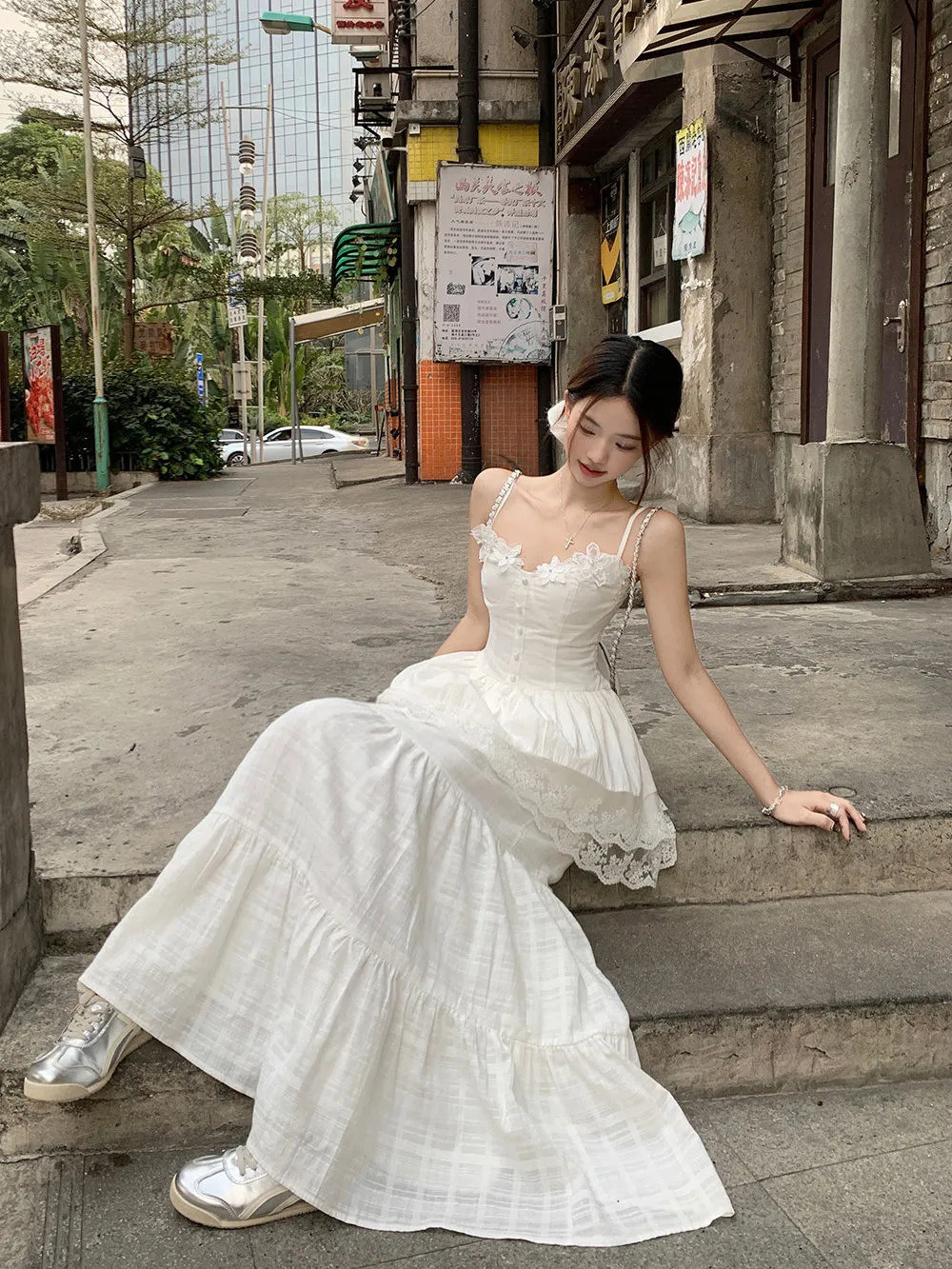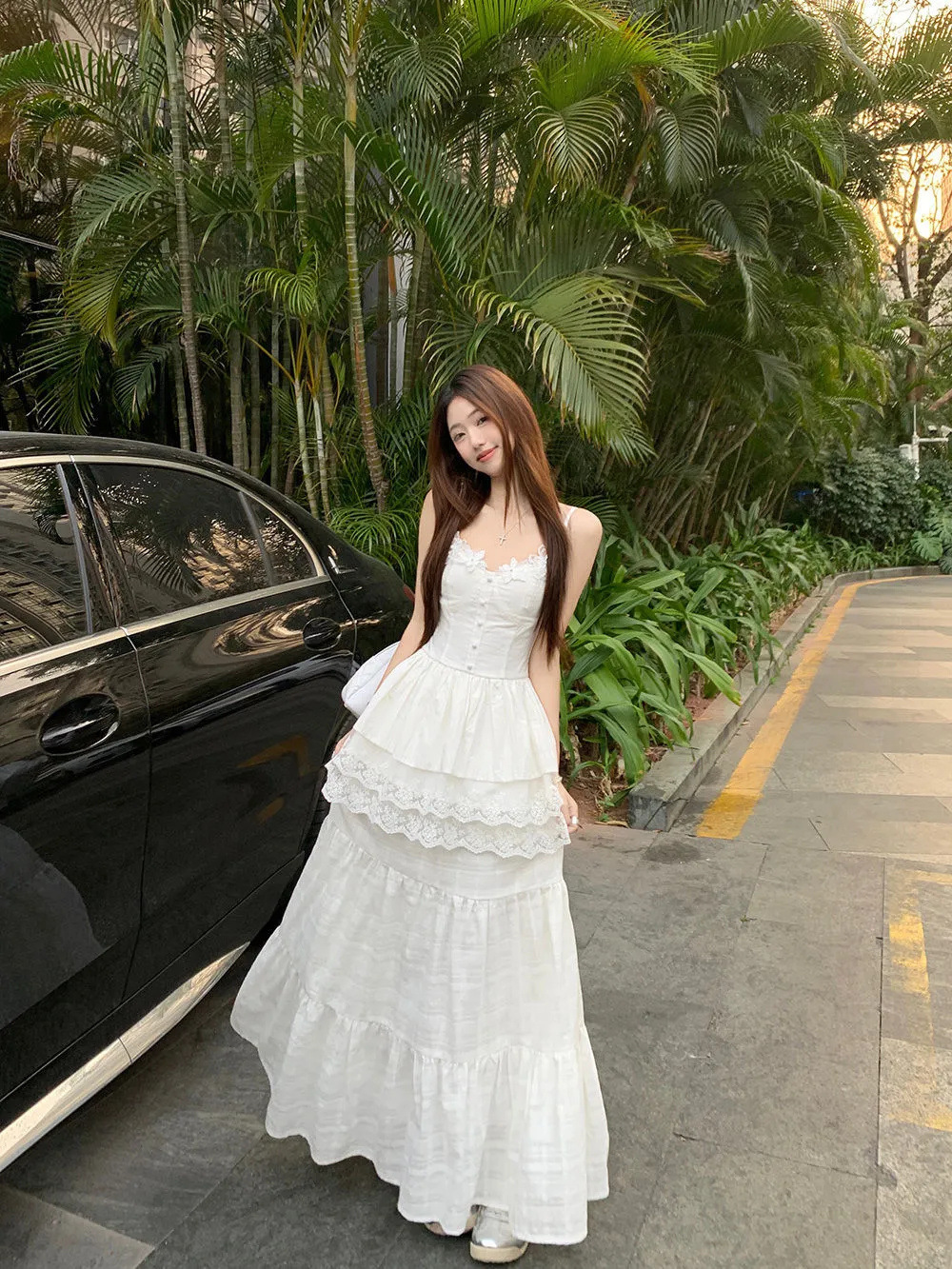 레이스 바느질 슬리밍 디자인 카미 솔 조끼 높은 허리 반쪽 원피스 여성의 2025 여름 새로운 패션 세트스토어 가기