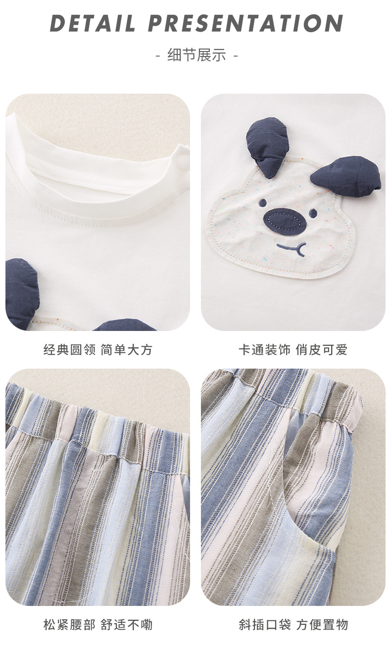 소년의 여름 2025 새로운 도착 만화 반팔 얇은 두 조각 여름 아기 소년을위한 세련된 유행 줄무늬 반바지스토어 가기
