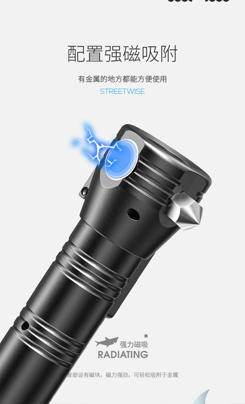 커팅기가있는 다기능 야외 강한 빛 손전등 자기 흡입 자동차 비상 손전등 COB 사이드 라이트 손전등