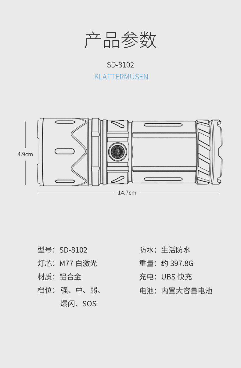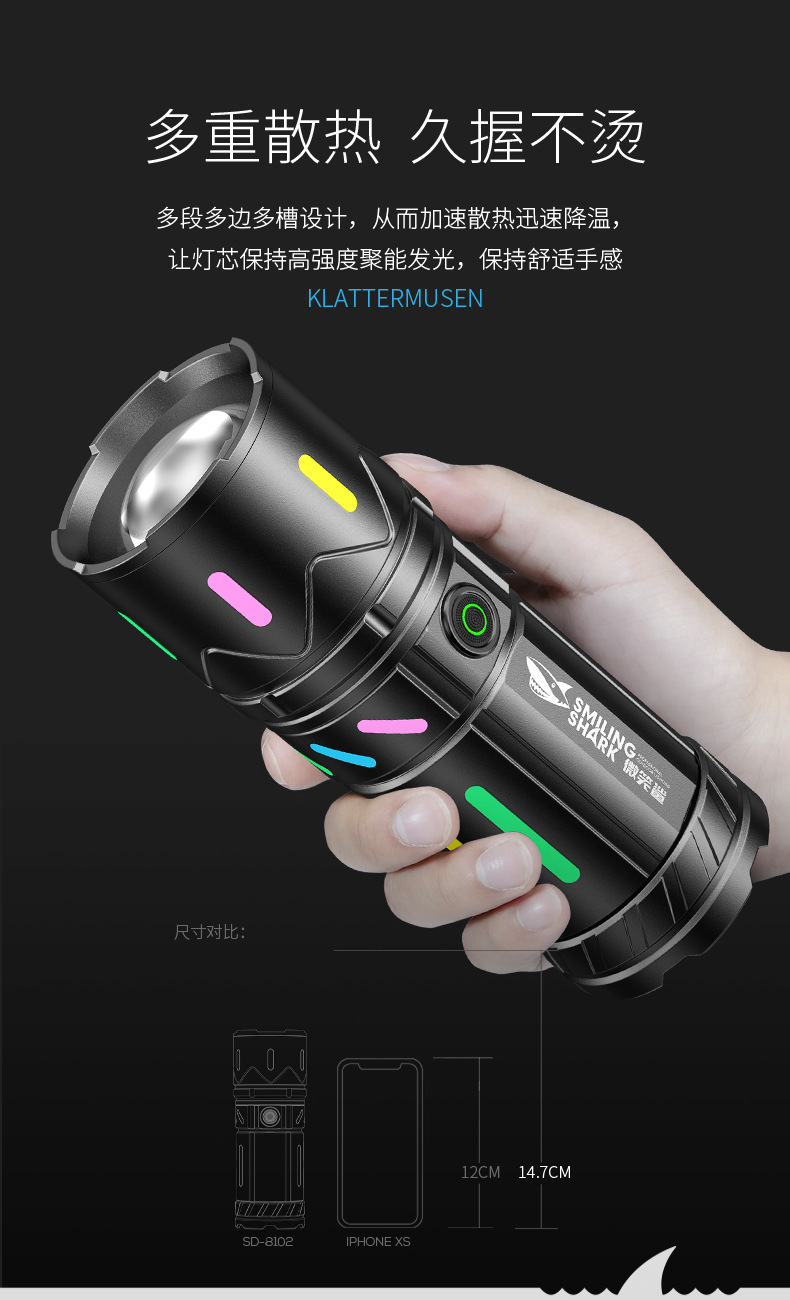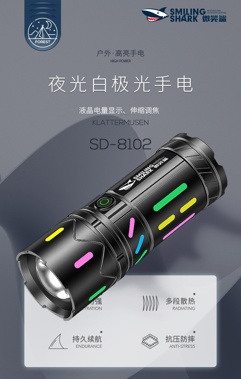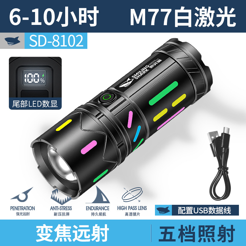 • SD-8102A 야광 백색 레이저 줌 손전등 [테일 LED 디지털 디스플레이]