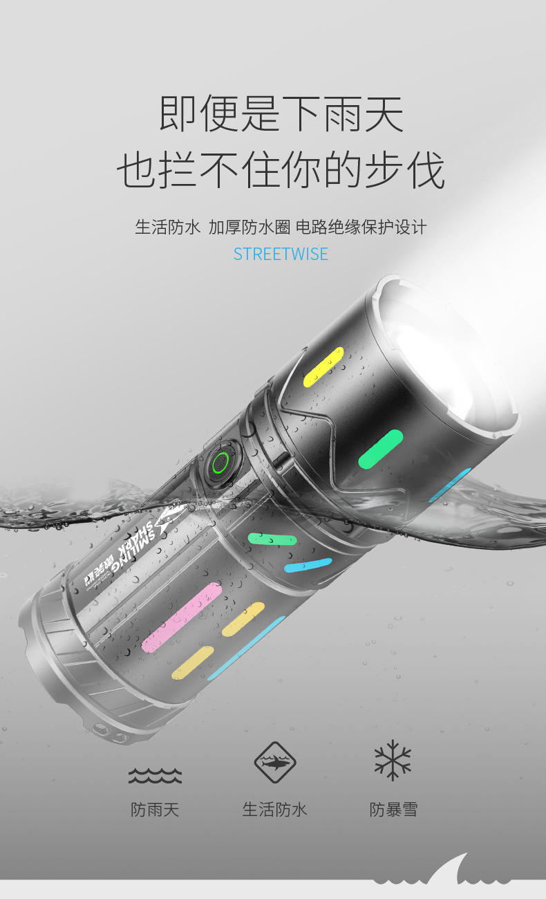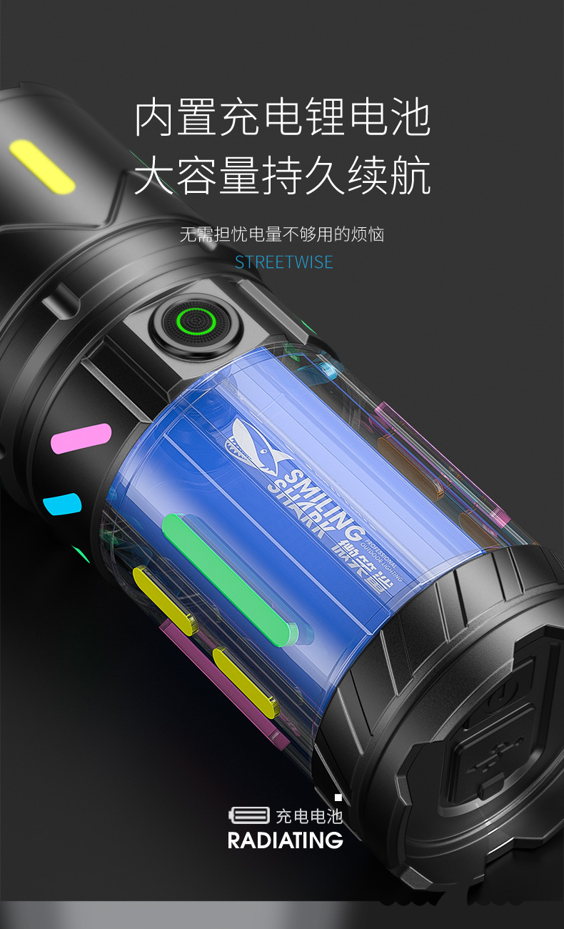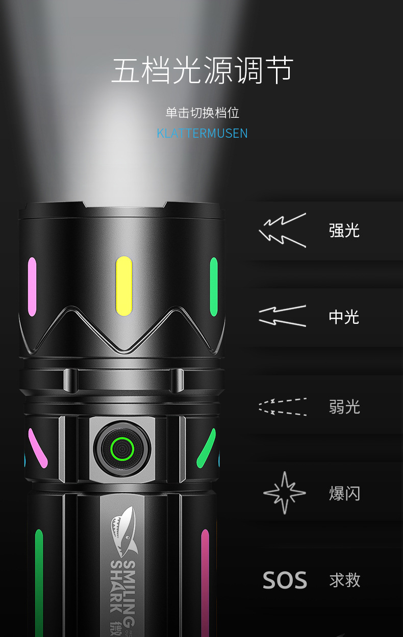 • SD-8102A 야광 백색 레이저 줌 손전등 [테일 LED 디지털 디스플레이]