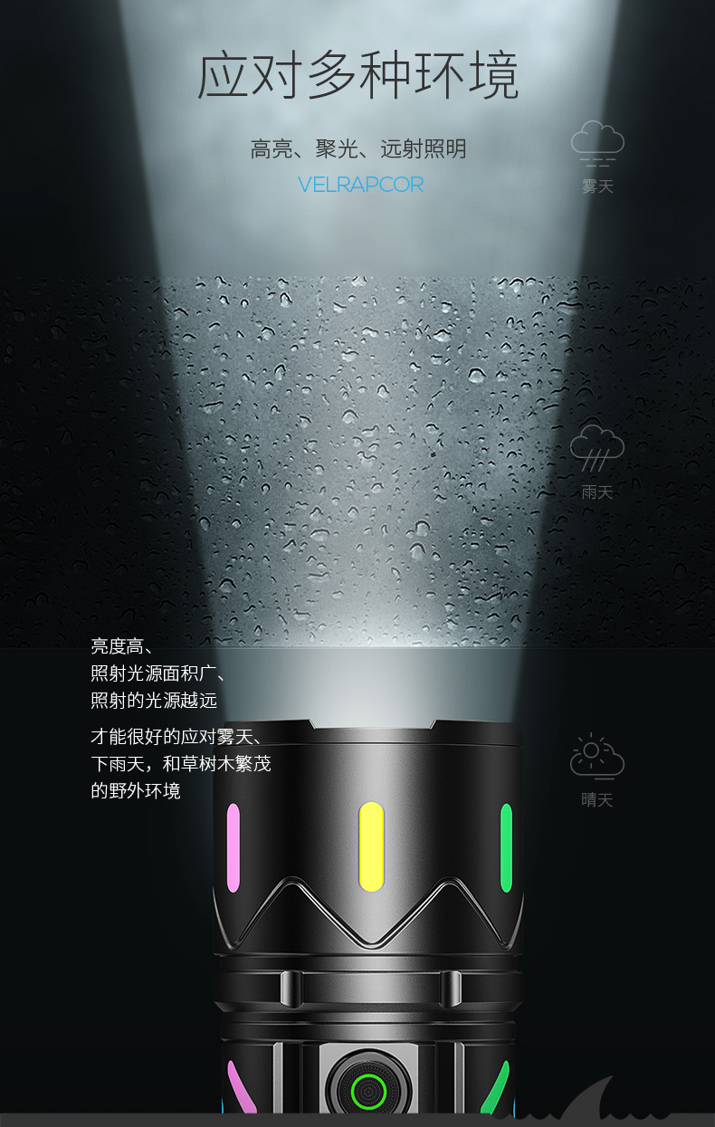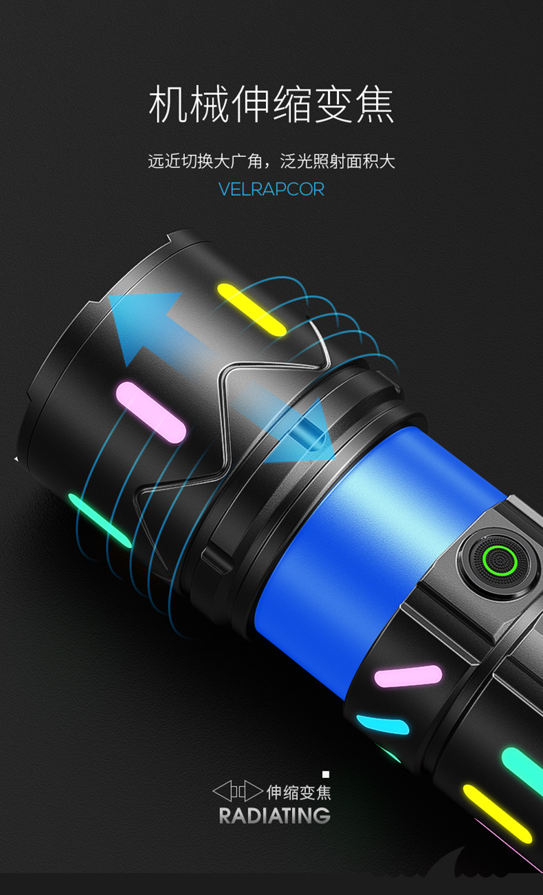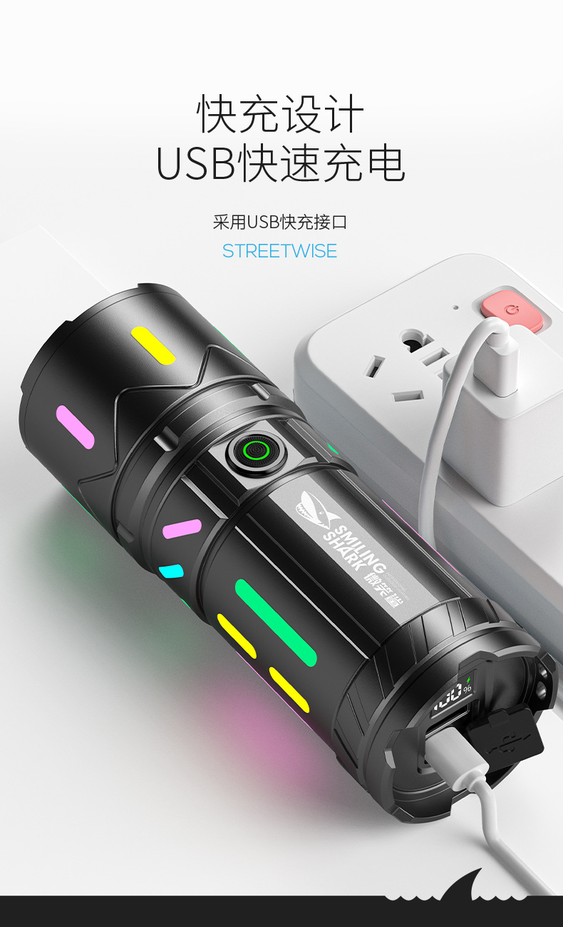 국경 간 신제품 슈퍼 밝은 흰색 레이저 손전등 컬러 야간 조명 야외 줌 강한 빛 꼬리 LCD 디지털 디스플레이 손전등스토어 가기