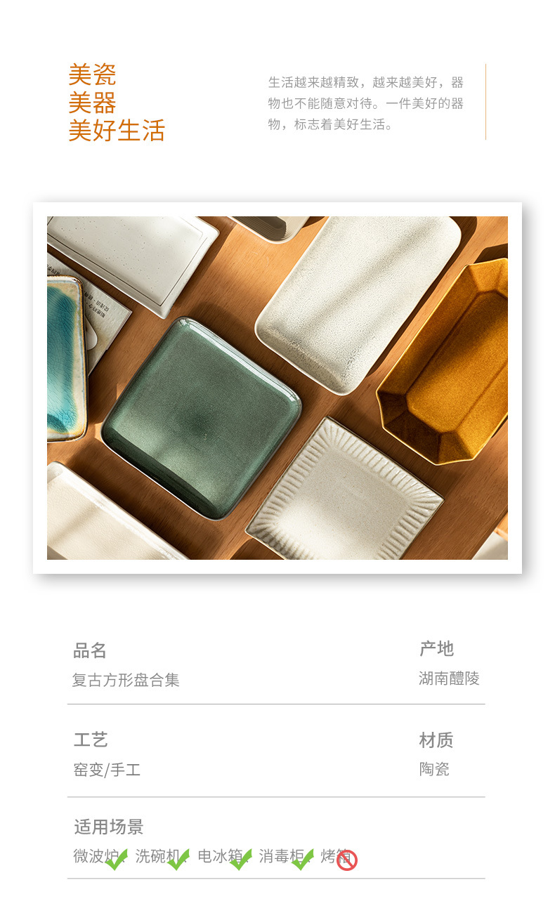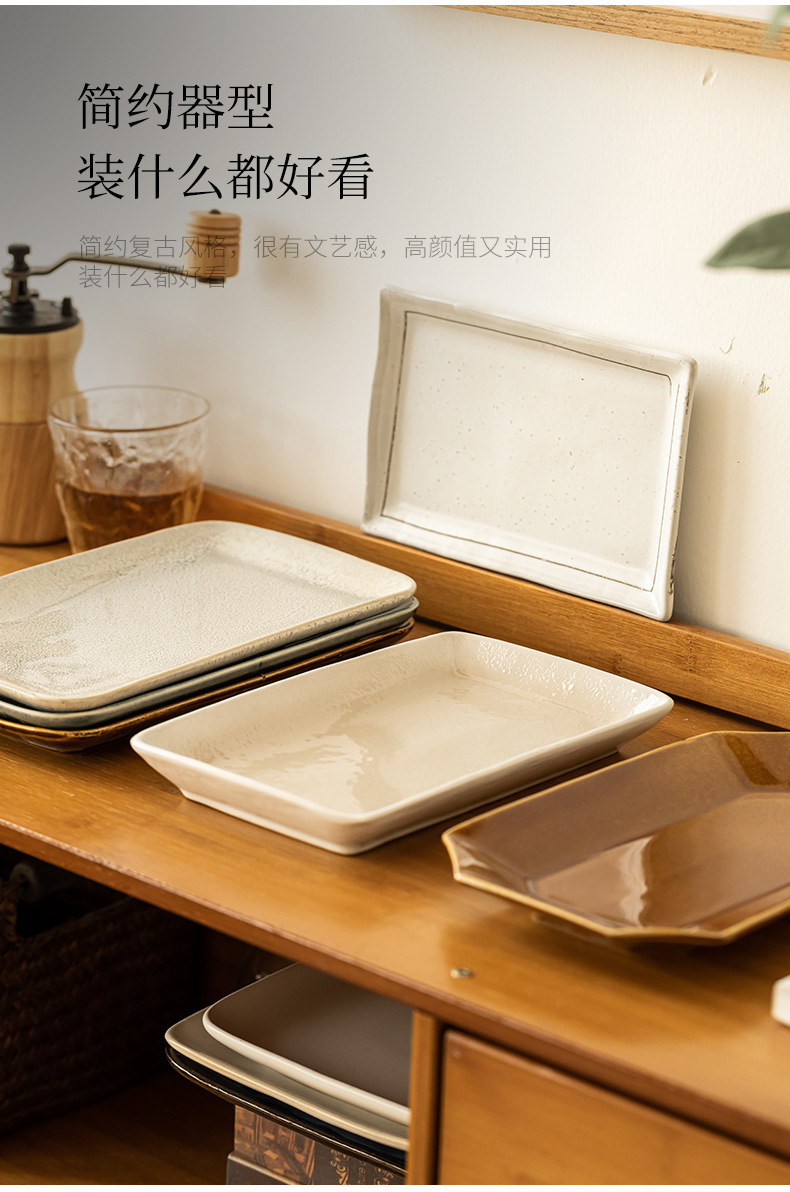 정사각형 접시 대형 컬렉션 복고풍 일본 스시 접시 가정용 세라믹 접시 디저트 접시 도매 디저트 케이크 접시스토어 가기