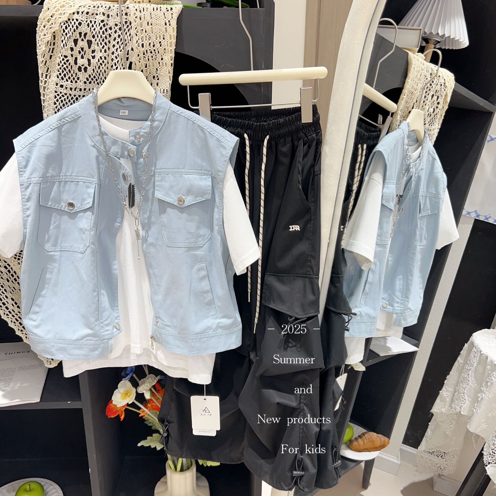 어린이 조끼 2025 남아 여아 봄 가을 신상 3117 중대형 어린이 한국 스타일 심플 대형 포켓 조끼스토어 가기