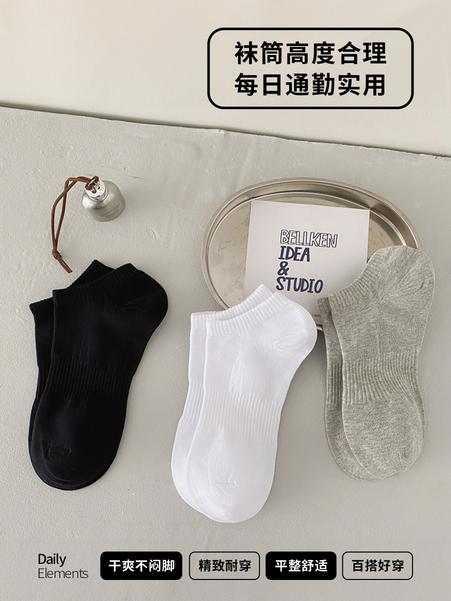 양말 여성용 흑백 단색 짧은 양말 남성용 및 여성용 여름 얇은 짧은 양말 학생 스포츠 양말 간단하고 다재다능한 보트 양말스토어 가기