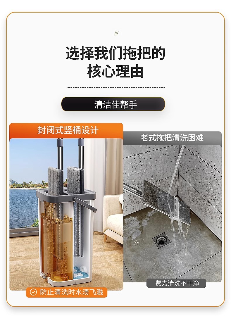 걸레 2024 새로운 가정용 원걸레, 핸즈프리 세척 가능한 플랫 게으른 걸레 스크래퍼 걸레 도구스토어 가기