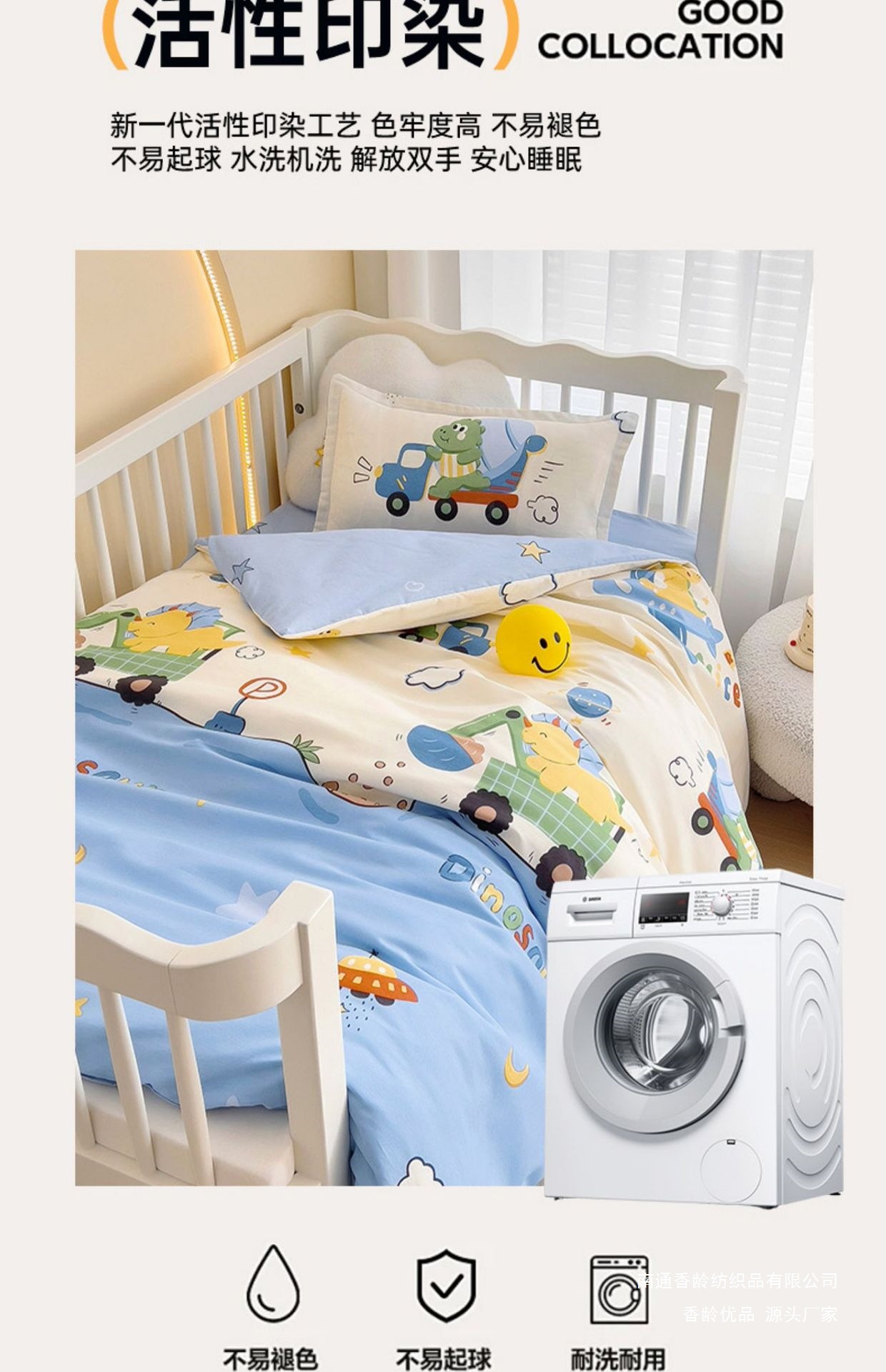 • 면 100% 어린이 3종세트 [이불커버 120x150+쿠션커버 60x135+베개커버 30x50]