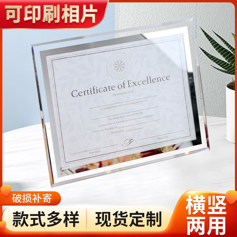수출 크리스탈 유리 포토 프레임 테이블 높은 감각 5 인치 6 인치 10 인치 광고 인증서 사진 프레임의 엄격한 선택스토어 가기