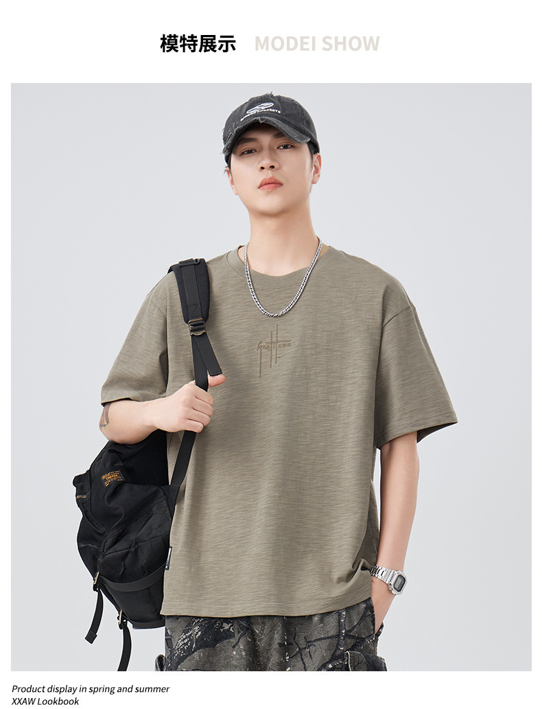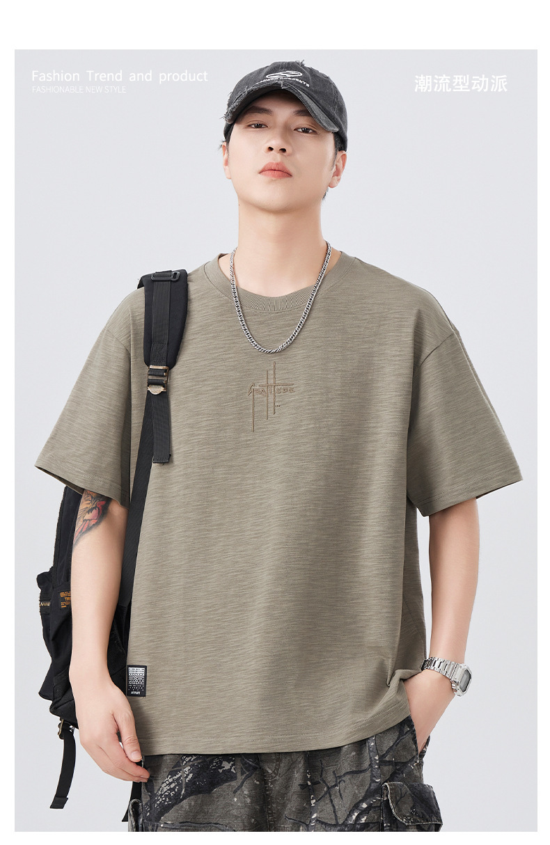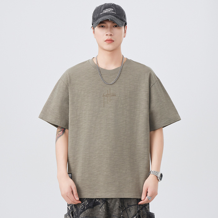 2025 새로운 여름 자수 반팔 티셔츠 남성용 다목적 티셔츠 트렌디 라운드 넥 캐주얼 통기성 얇은 티셔츠 탑스토어 가기