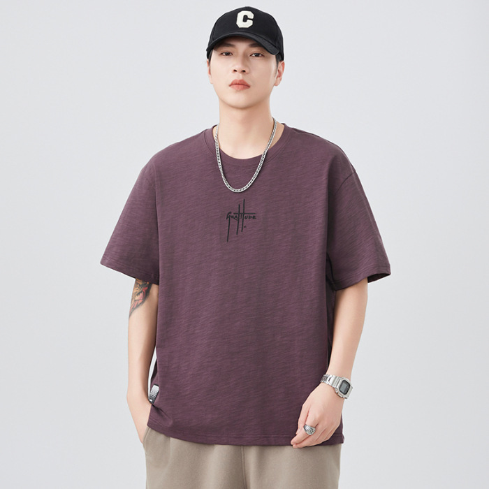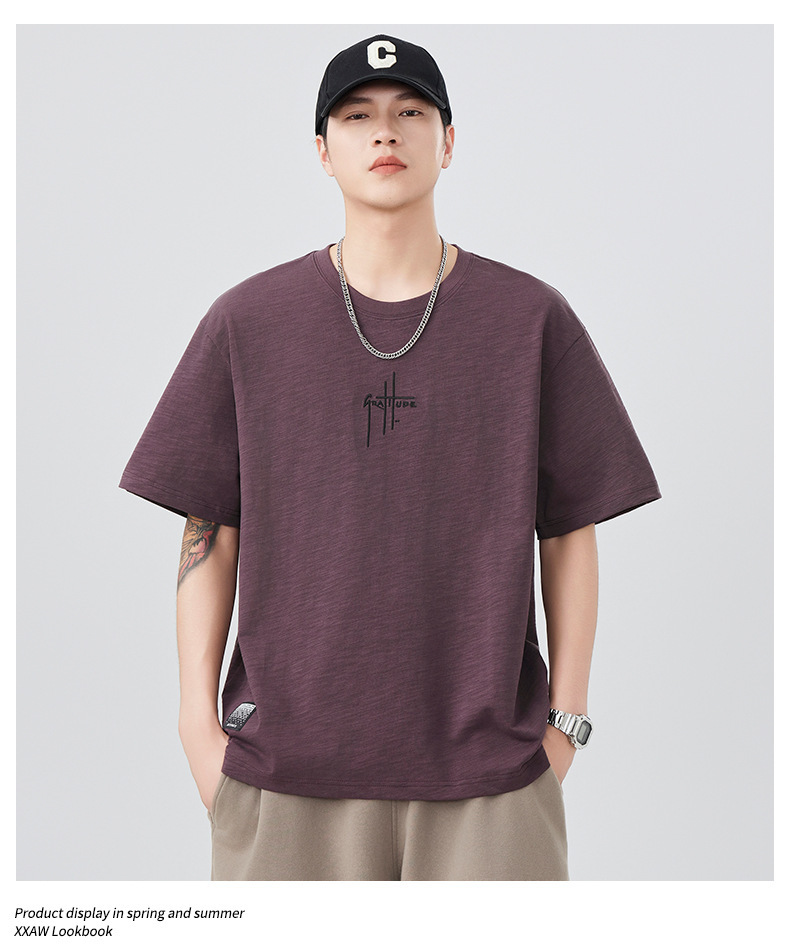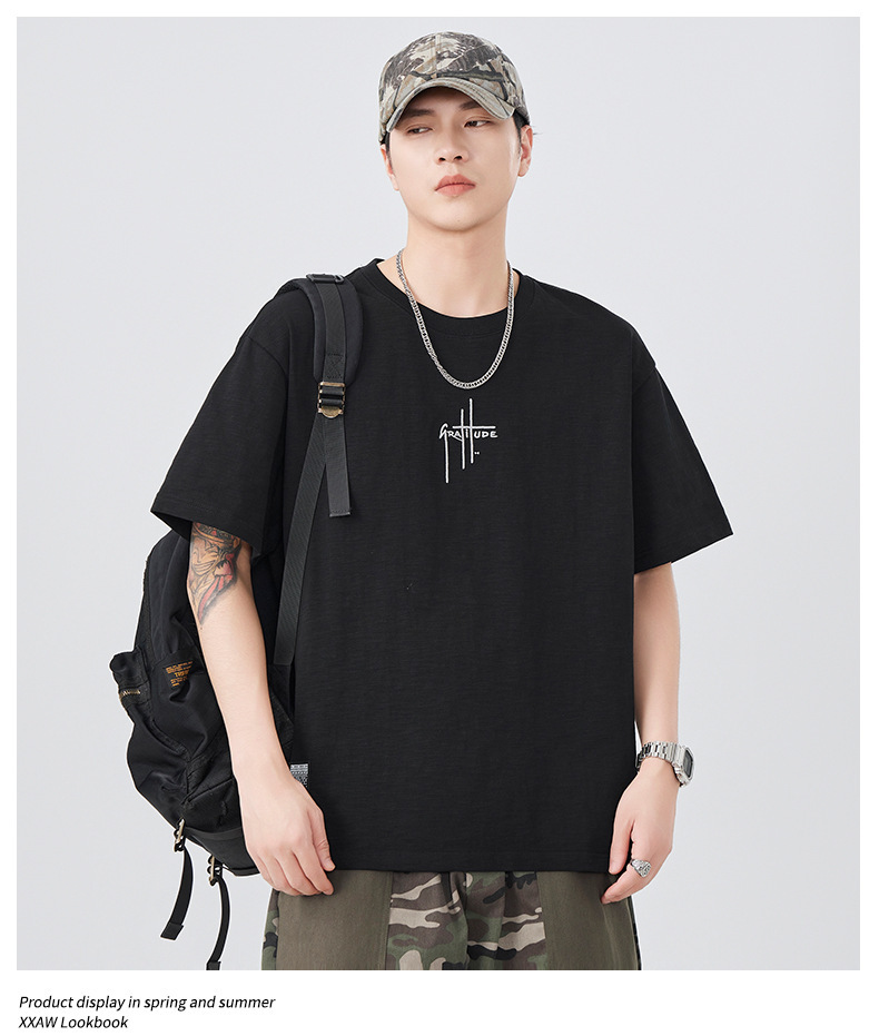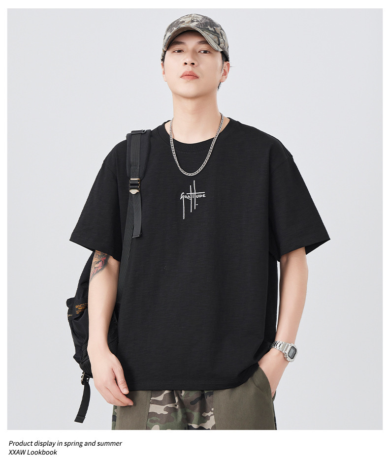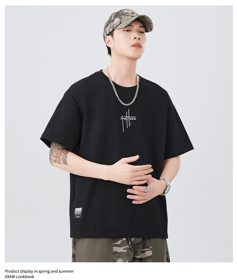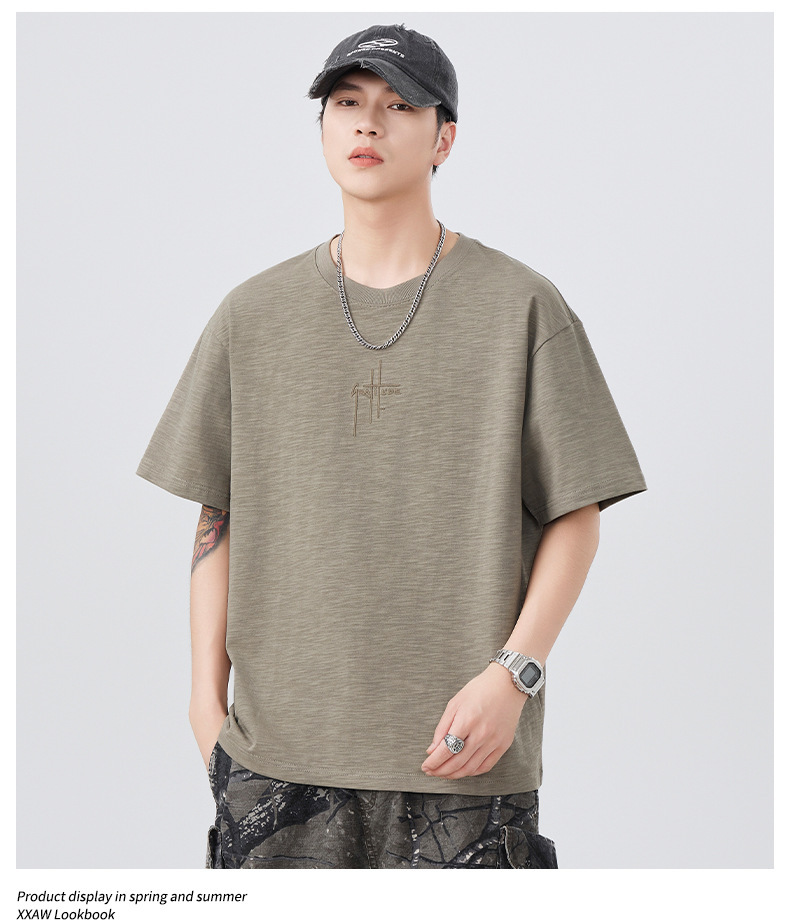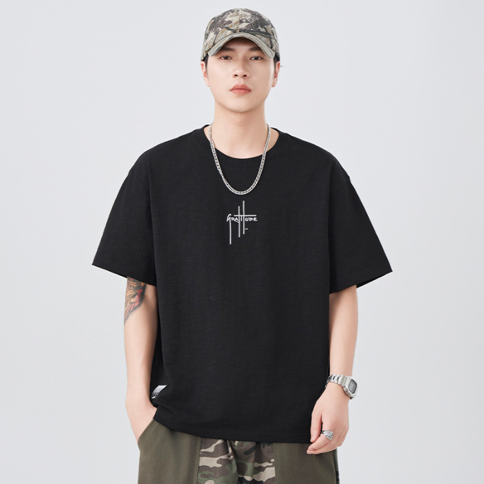 2025 새로운 여름 자수 반팔 티셔츠 남성용 다목적 티셔츠 트렌디 라운드 넥 캐주얼 통기성 얇은 티셔츠 탑