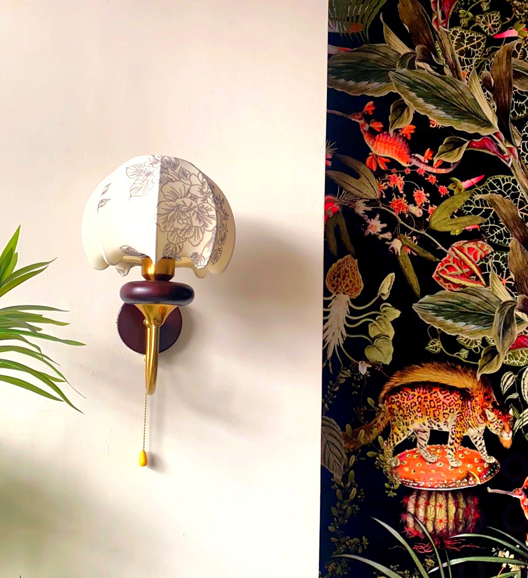 프랑스 중세 벽 램프 침실 머리맡 램프 미국 복고풍 패턴 패브릭 장식 배경 벽 스위치 램프스토어 가기